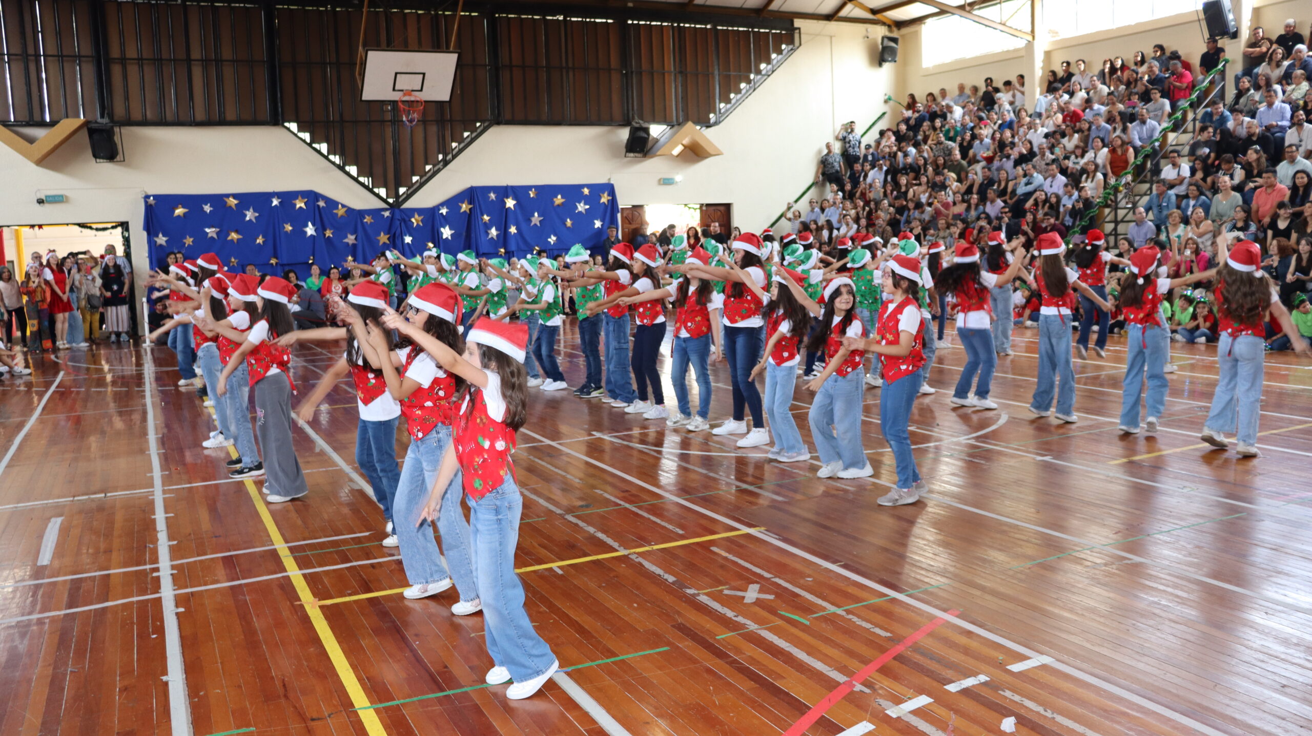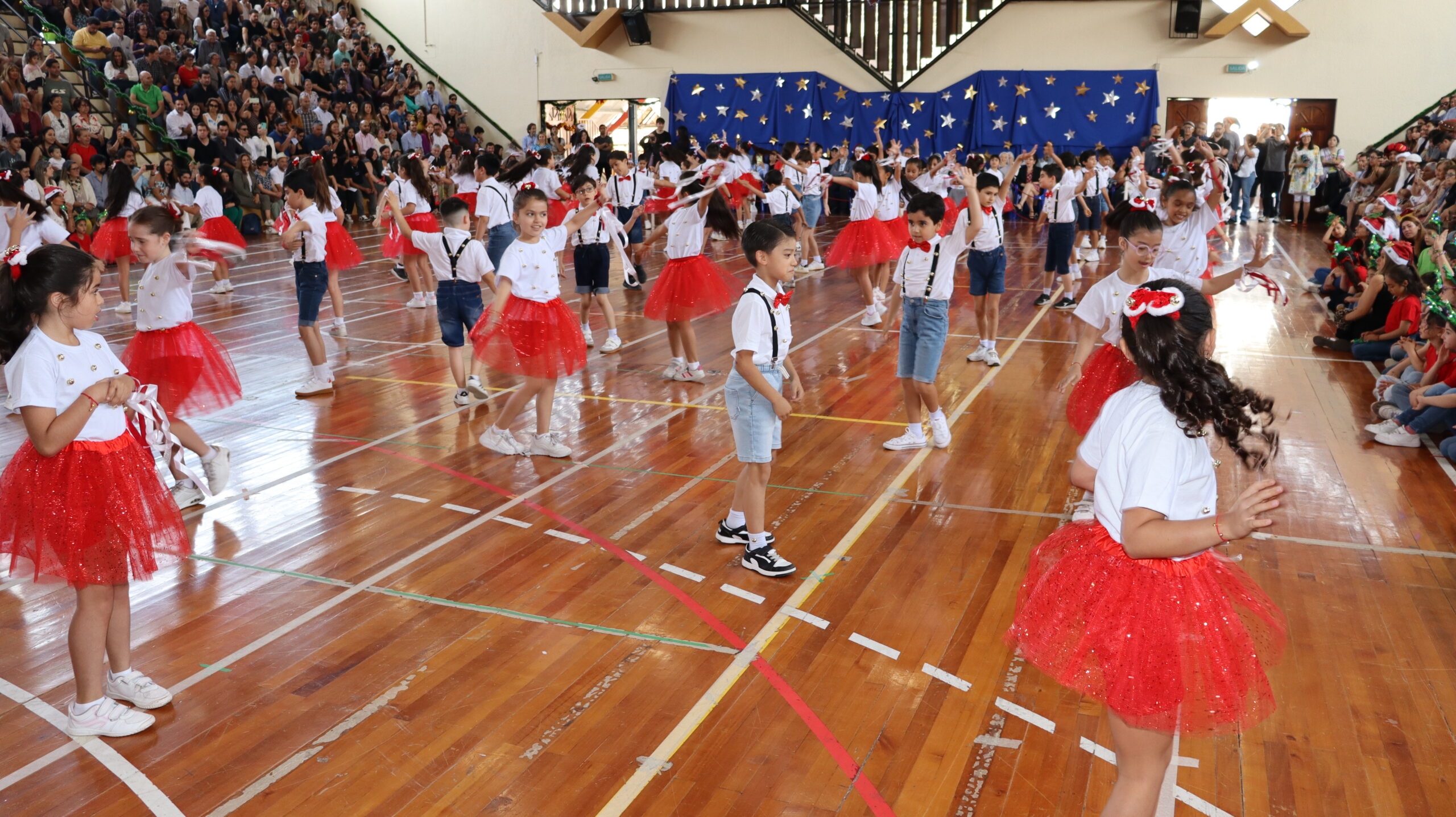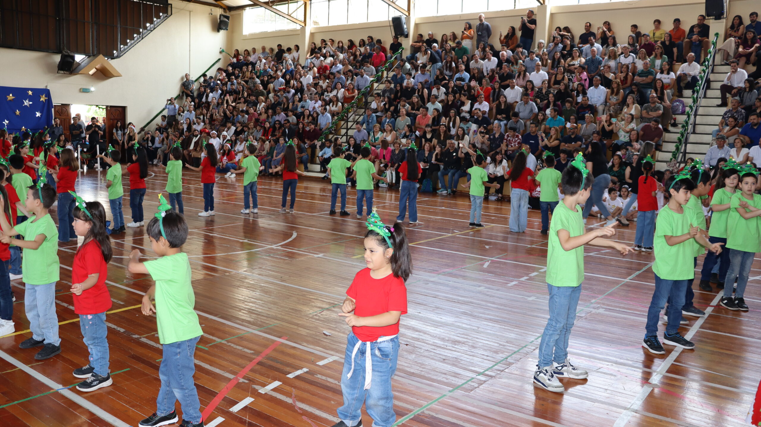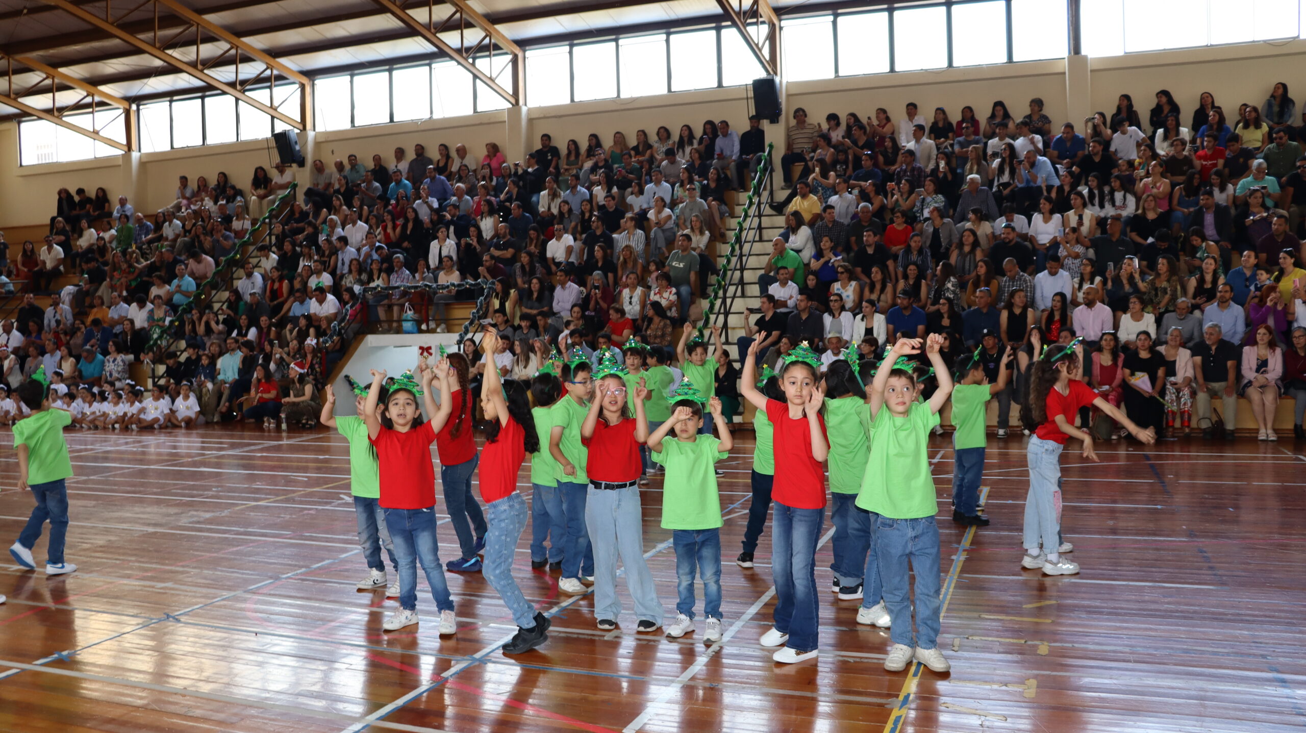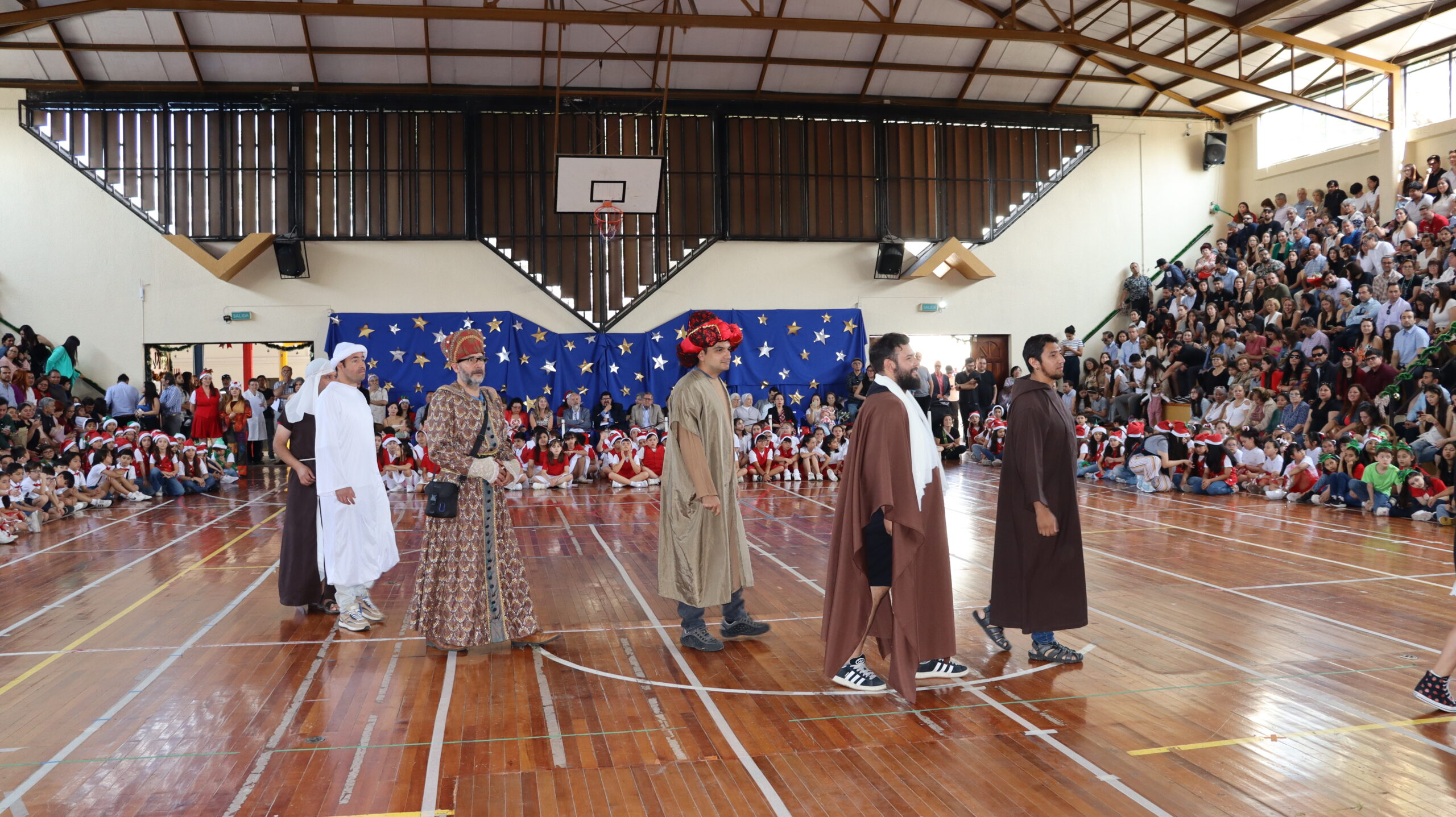 Se presentó la historia llamada “La estrella de Navidad”, donde estudiantes de 5° básico “B” representaron el cuento y apoderados de los cursos que participan en el acto formaron el pesebre humano. Los estudiantes de PK a 4° básicos bailaron diferentes cantos de Navidad, mostrando bellas coreografías armónicas para finalizar todos juntos con la canción “Ya llegó la Navidad.”