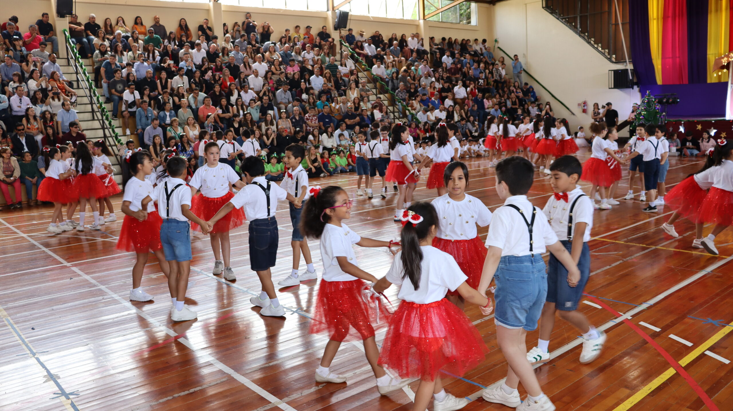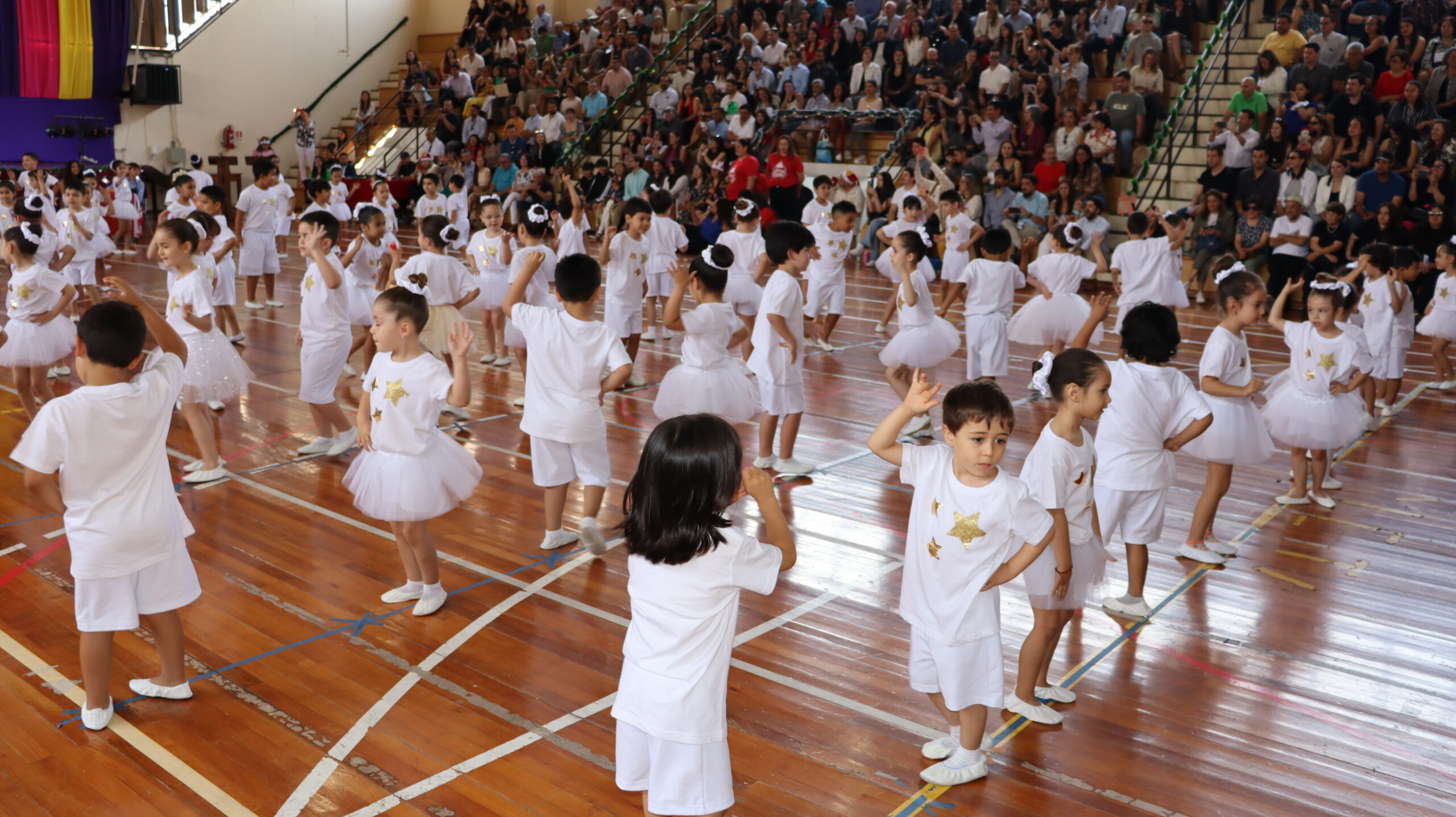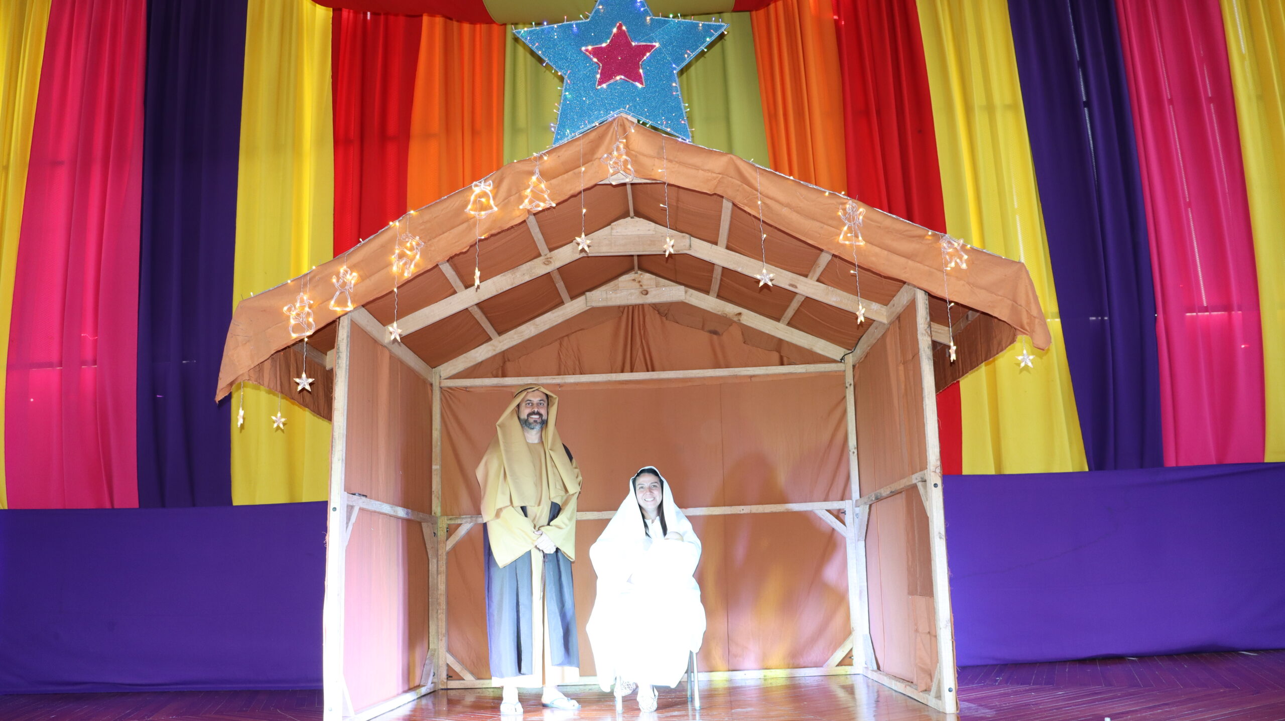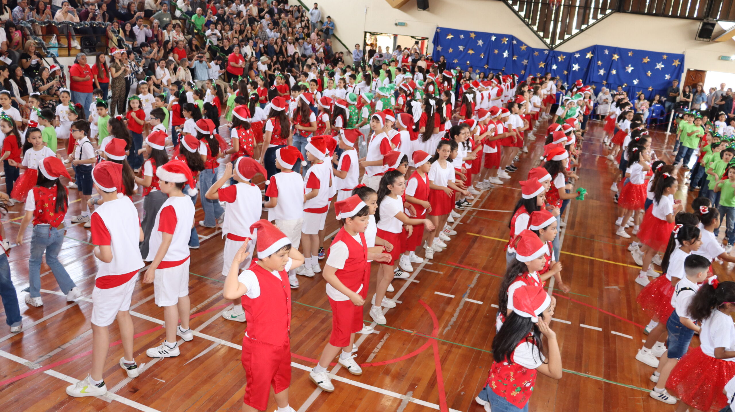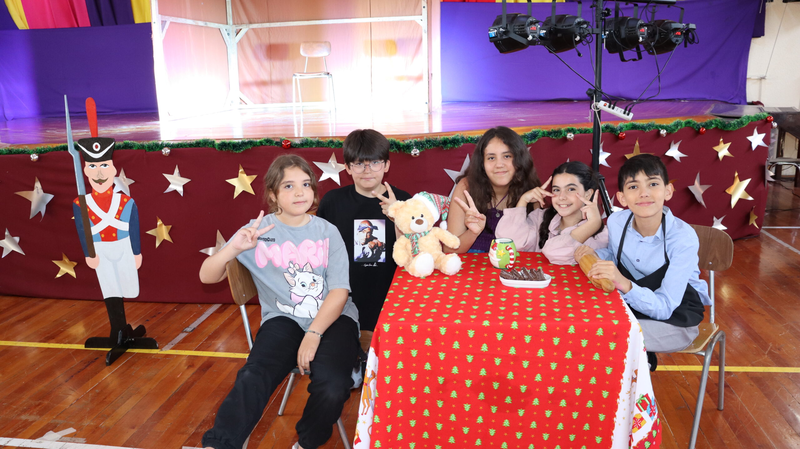 Se presentó la historia llamada “La estrella de Navidad”, donde estudiantes de 5° básico “B” representaron el cuento y apoderados de los cursos que participan en el acto formaron el pesebre humano. Los estudiantes de PK a 4° básicos bailaron diferentes cantos de Navidad, mostrando bellas coreografías armónicas para finalizar todos juntos con la canción “Ya llegó la Navidad.”