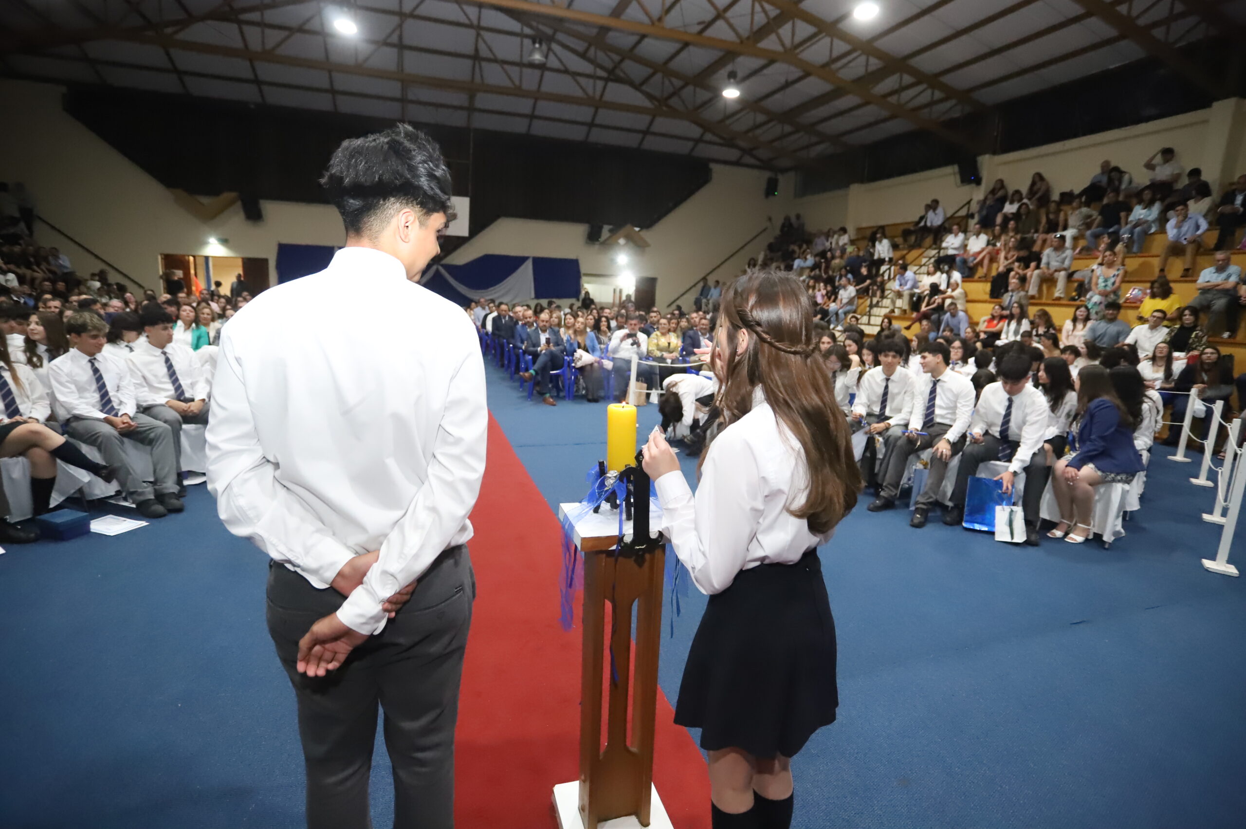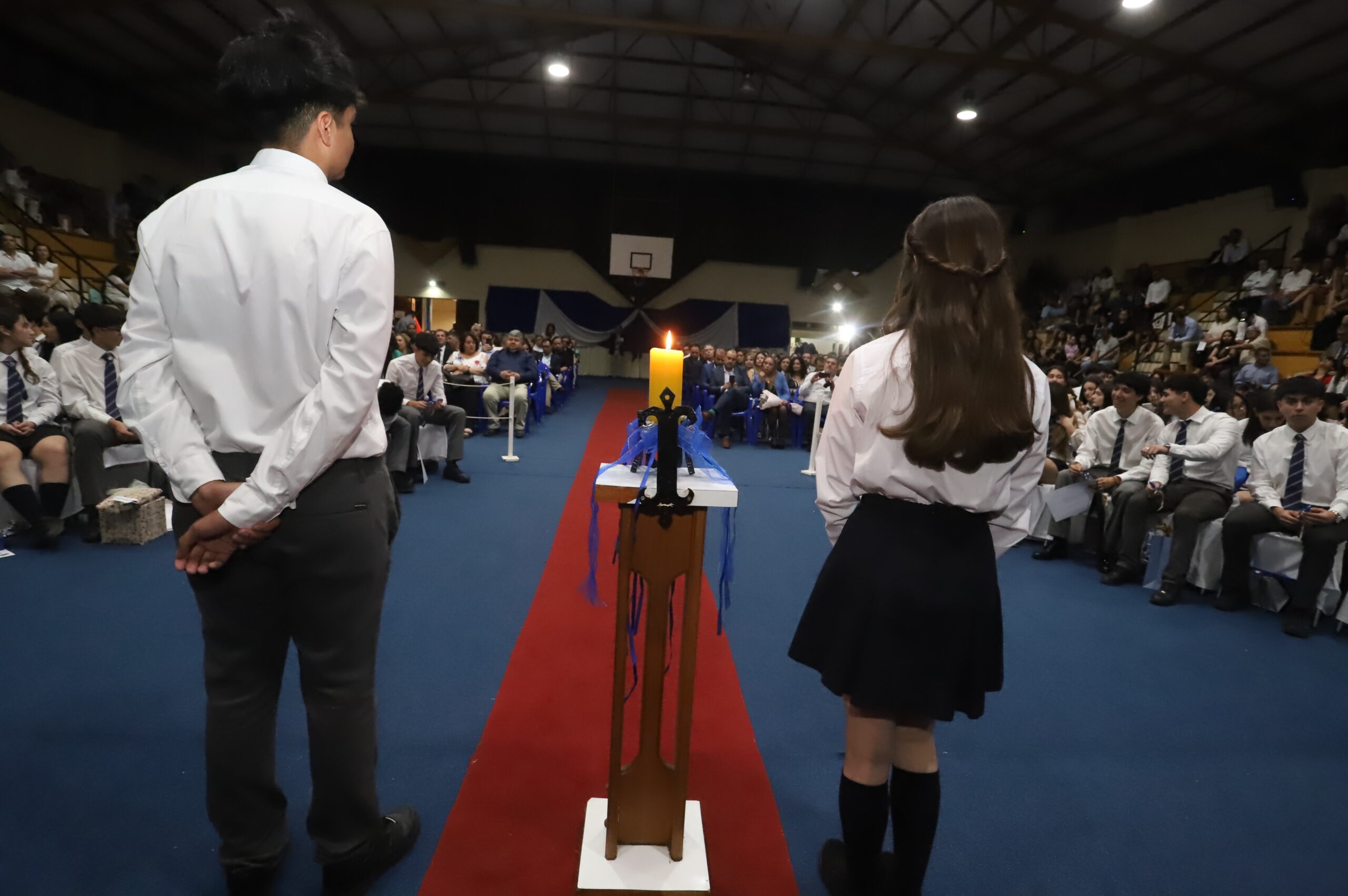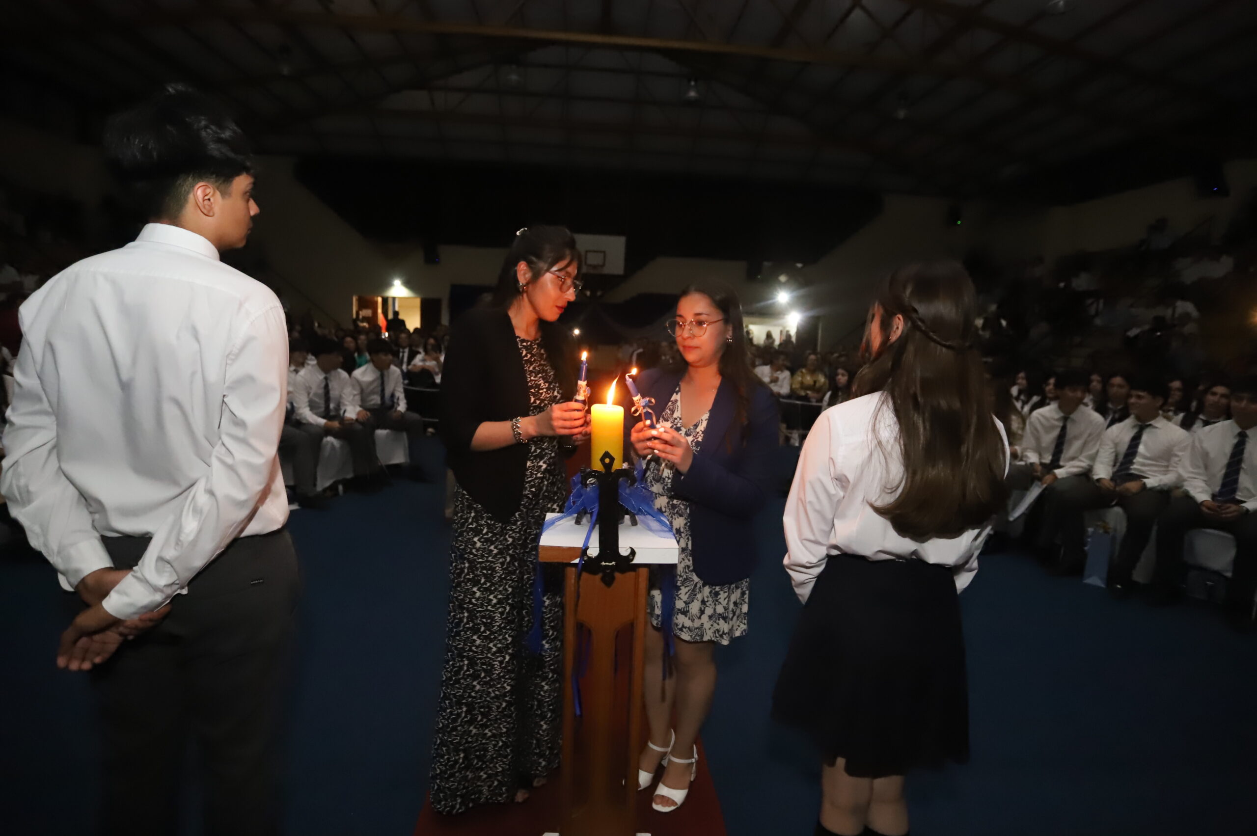 Al final de la Ceremonia se llega a uno de los momentos más significativo y emotivo: las manos de sus Profesoras Jefes representan a toda la Comunidad Escolar, sostienen la luz: una vela que anuncia la partida de sus estudiantes, porque son el resultado de un largo camino y son el fin último de nuestra labor como Educadores Calasancios.
