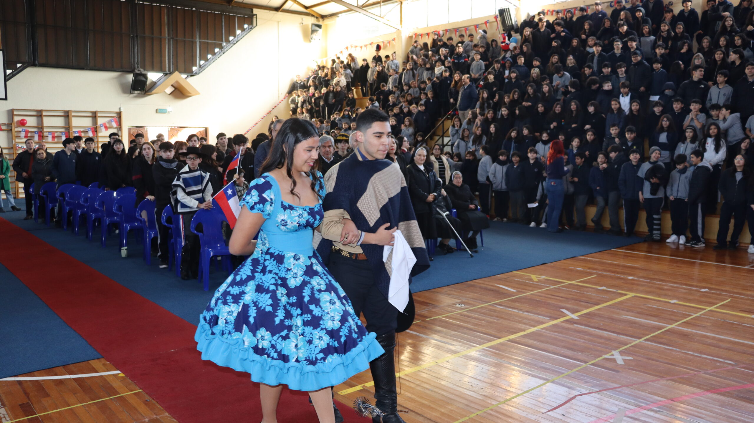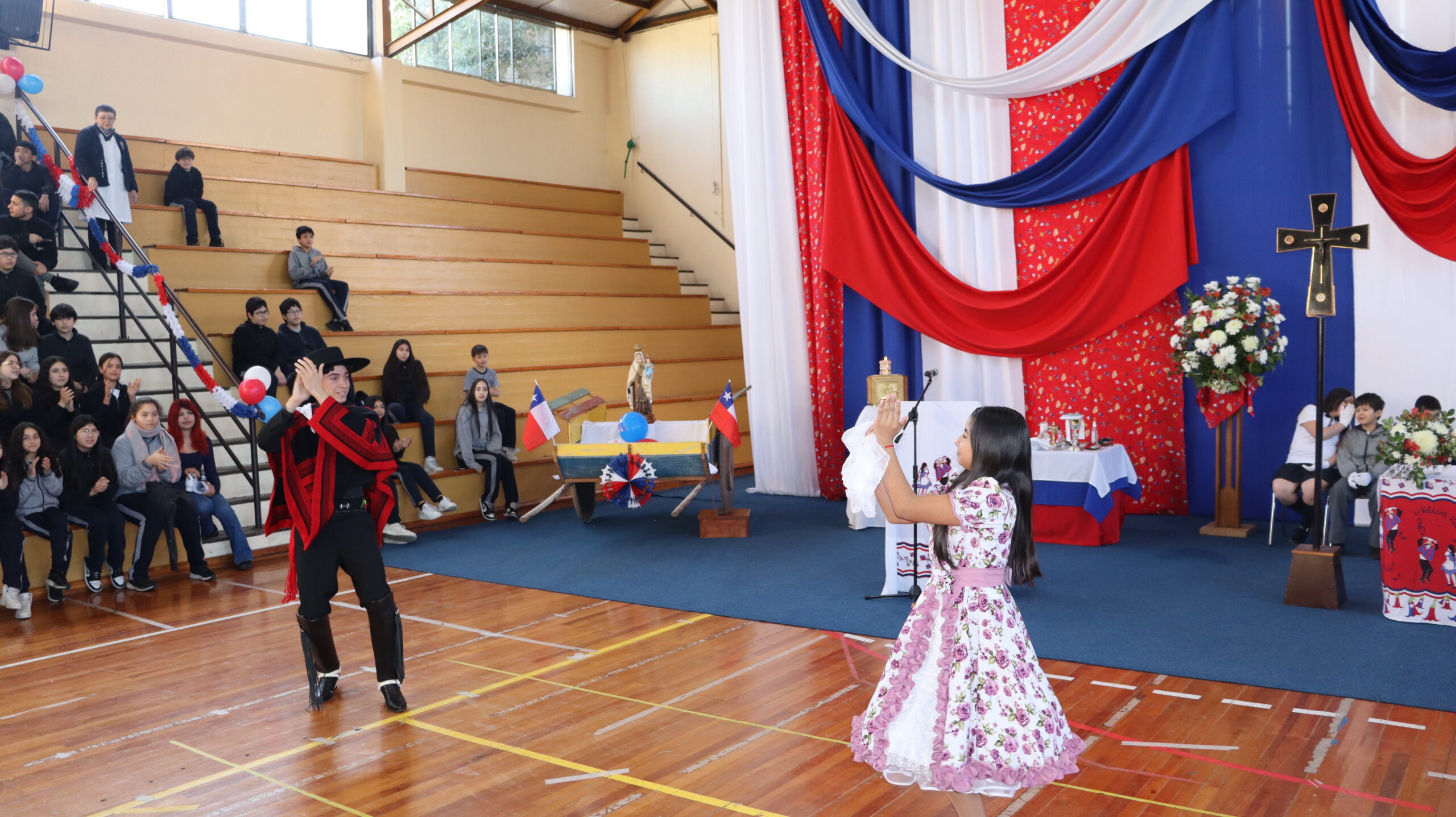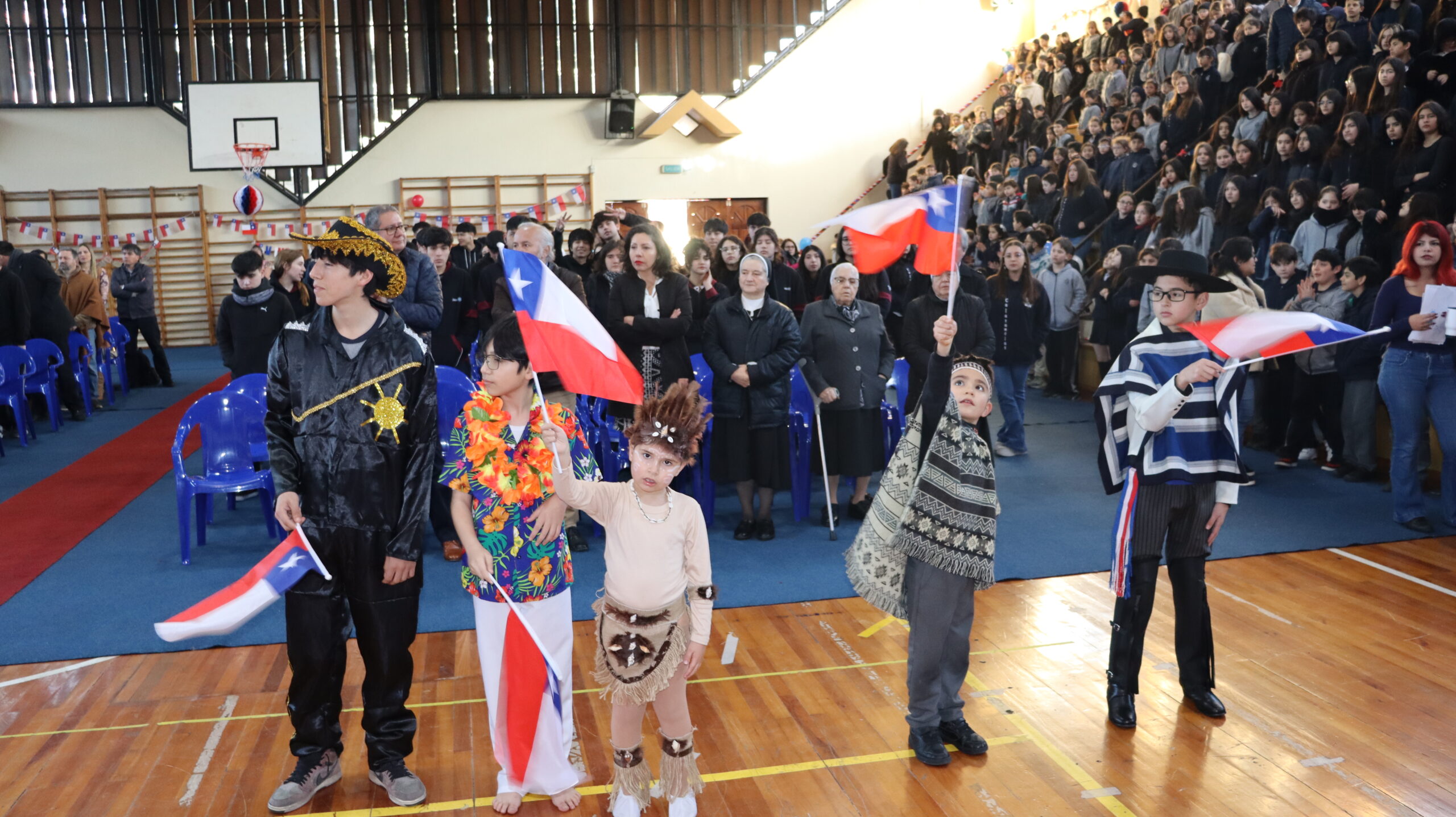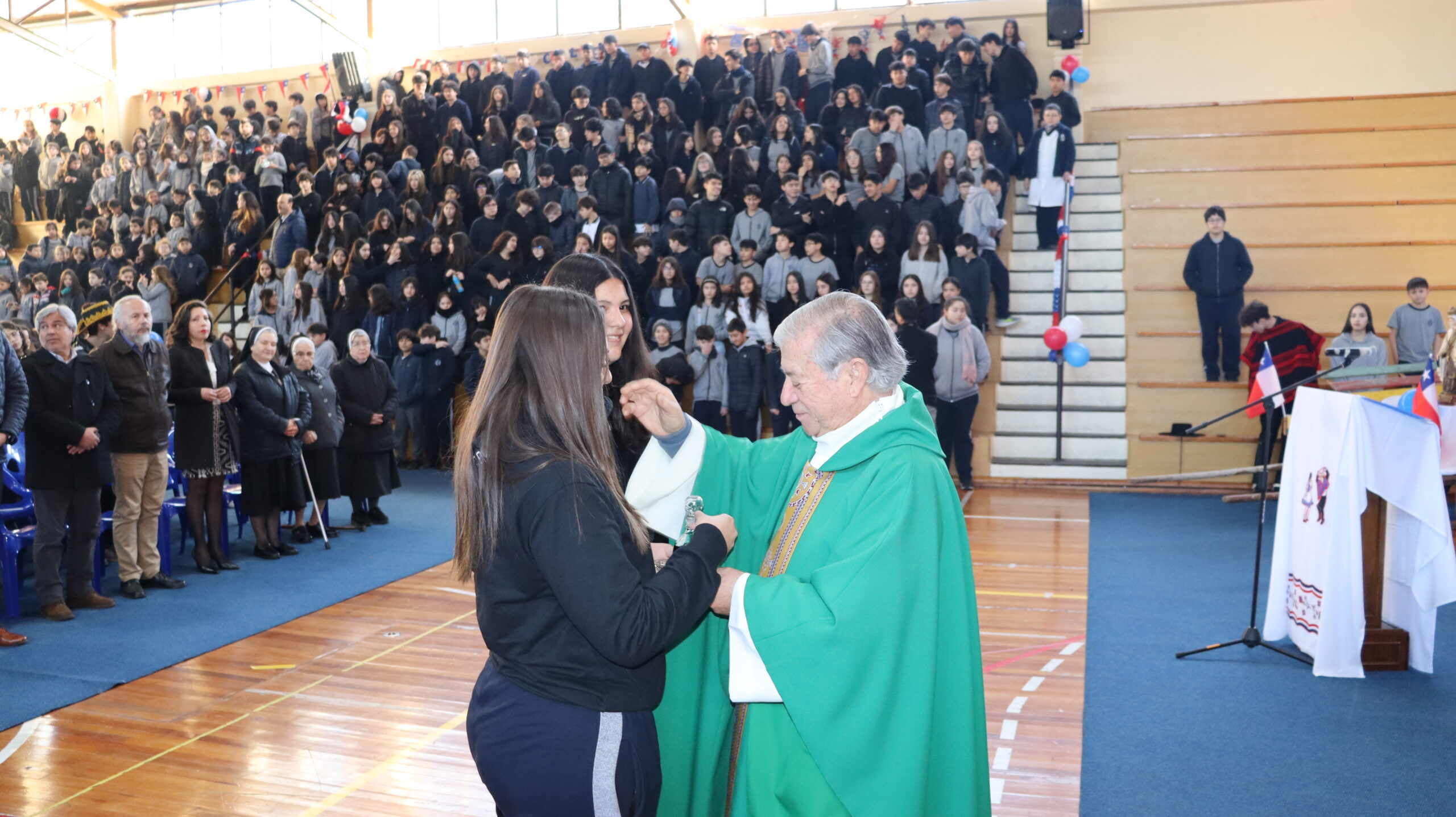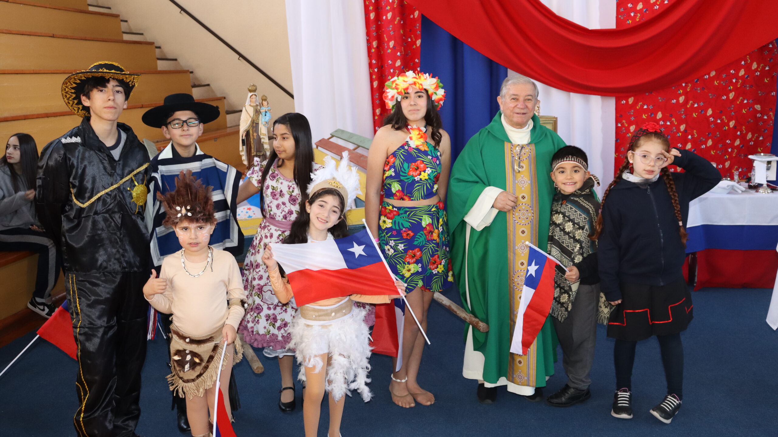 Toda la comunidad educativa: estudiantes, docentes, directivos, comunidad religiosa, padres, apoderados y personal del colegio, nos reunimos para dar gracias a Dios por nuestra patria. La participación de todos, con sus trajes típicos, sus pañuelos al viento y sus voces entonando cantos a la chilena, hizo de esta celebración un verdadero testimonio de fe y de amor por nuestras raíces.