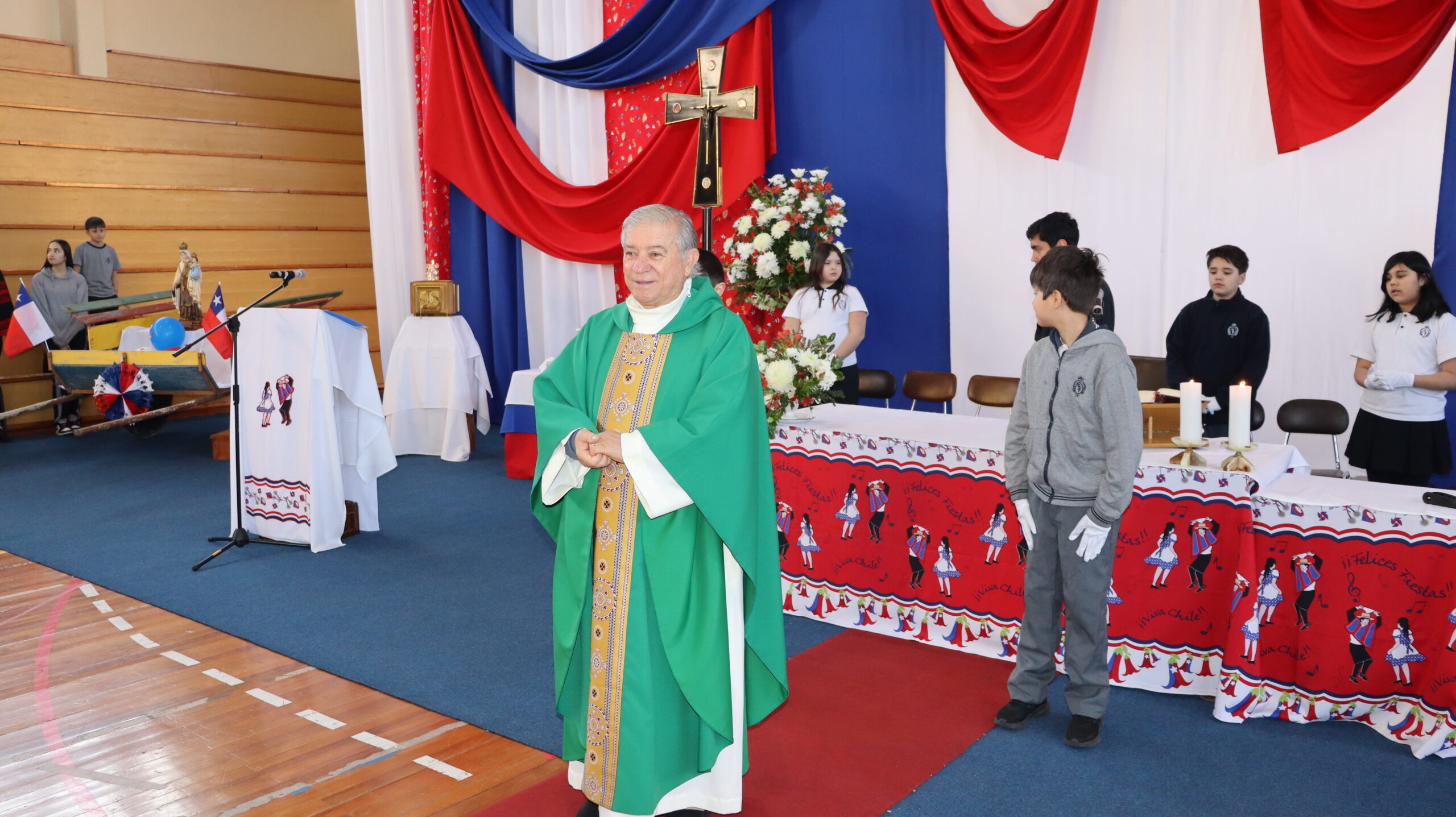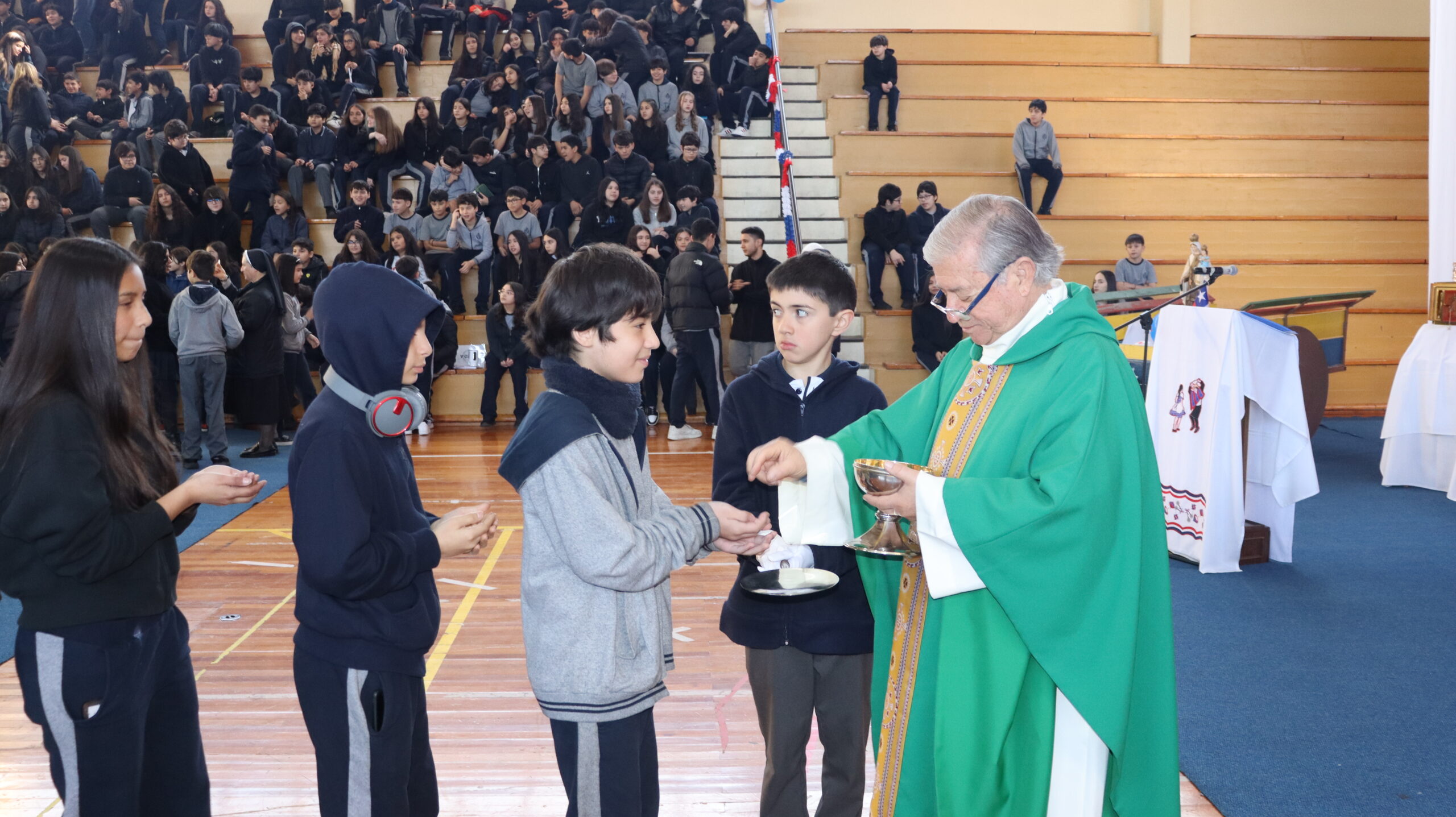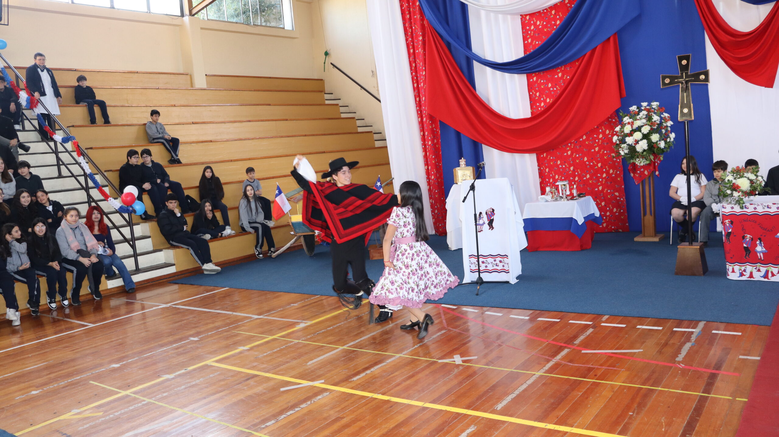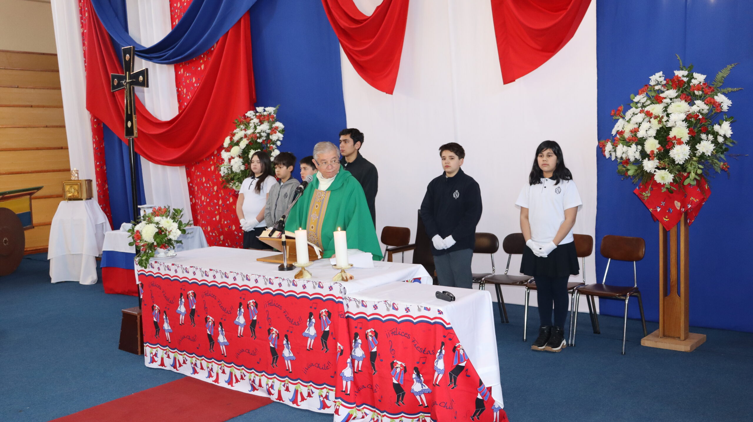 Toda la comunidad educativa: estudiantes, docentes, directivos, comunidad religiosa, padres, apoderados y personal del colegio, nos reunimos para dar gracias a Dios por nuestra patria. La participación de todos, con sus trajes típicos, sus pañuelos al viento y sus voces entonando cantos a la chilena, hizo de esta celebración un verdadero testimonio de fe y de amor por nuestras raíces.