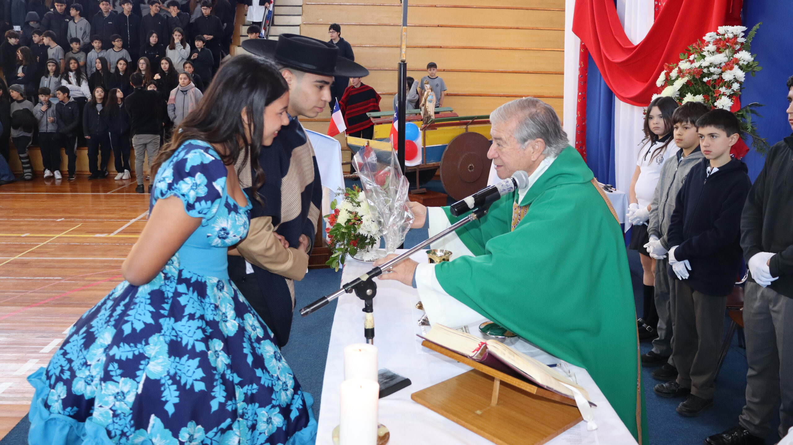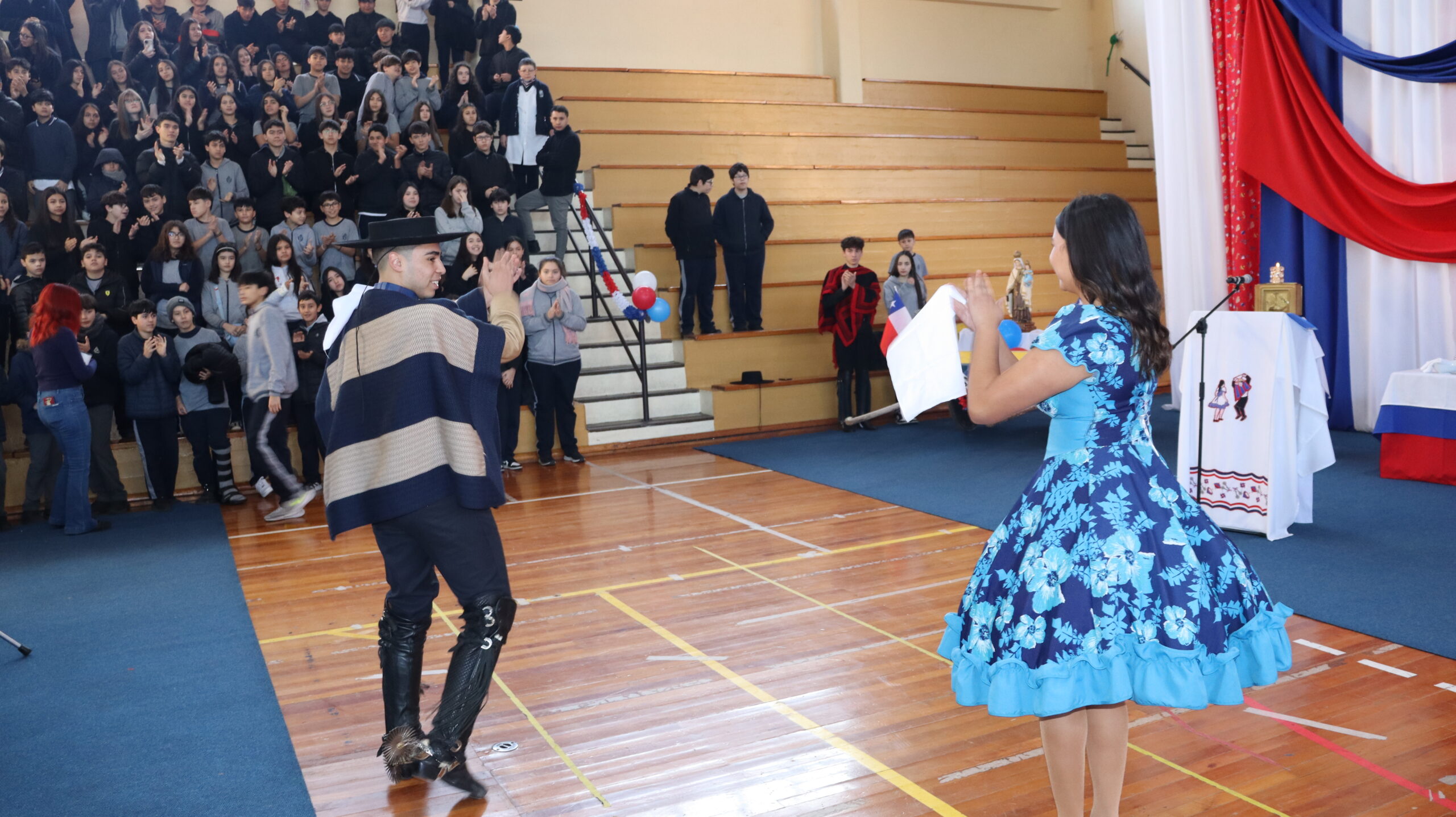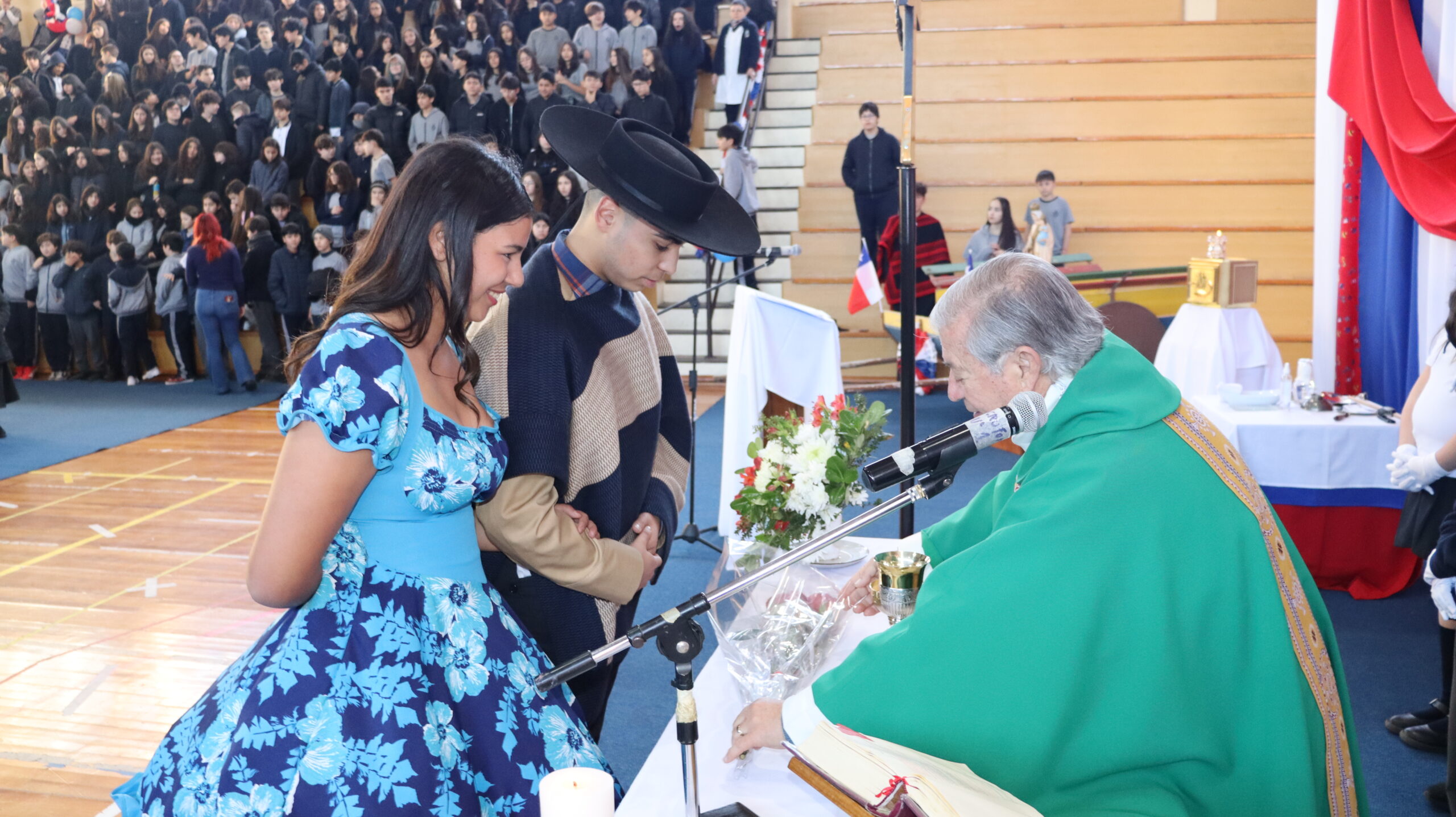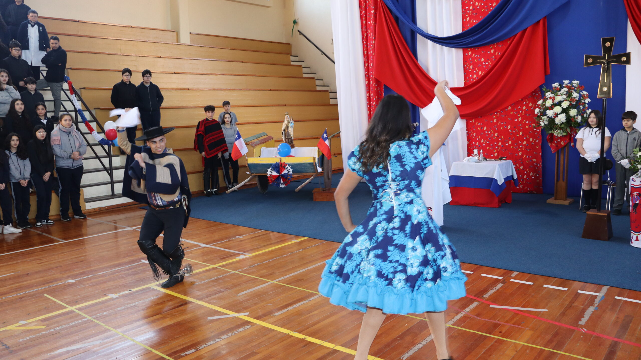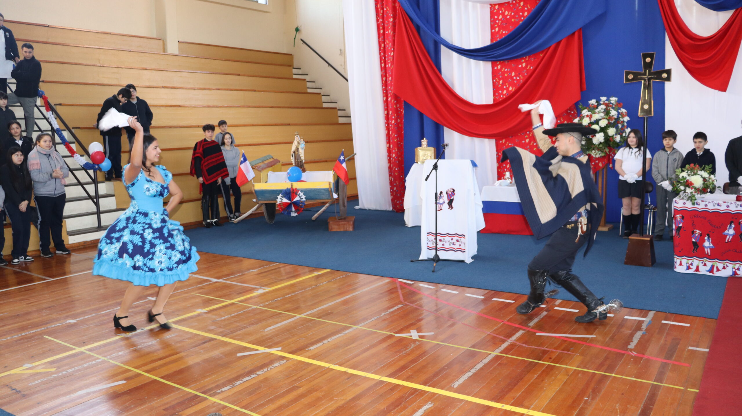 Toda la comunidad educativa: estudiantes, docentes, directivos, comunidad religiosa, padres, apoderados y personal del colegio, nos reunimos para dar gracias a Dios por nuestra patria. La participación de todos, con sus trajes típicos, sus pañuelos al viento y sus voces entonando cantos a la chilena, hizo de esta celebración un verdadero testimonio de fe y de amor por nuestras raíces.