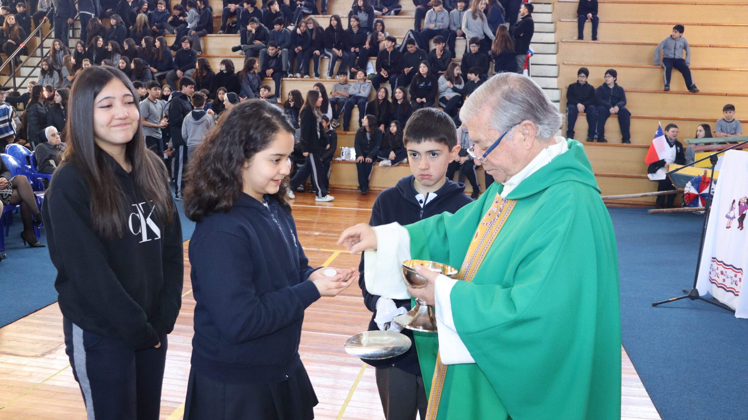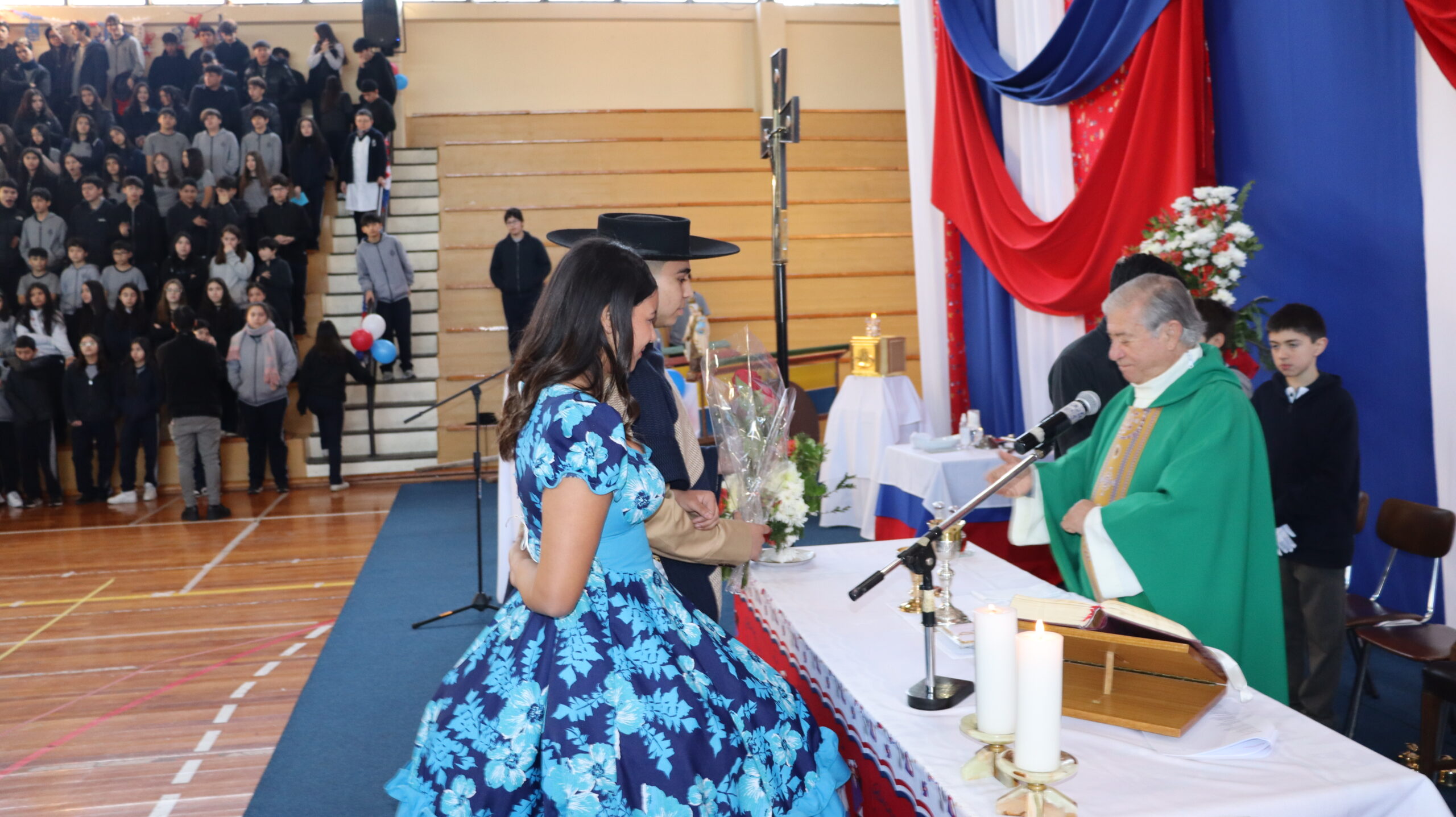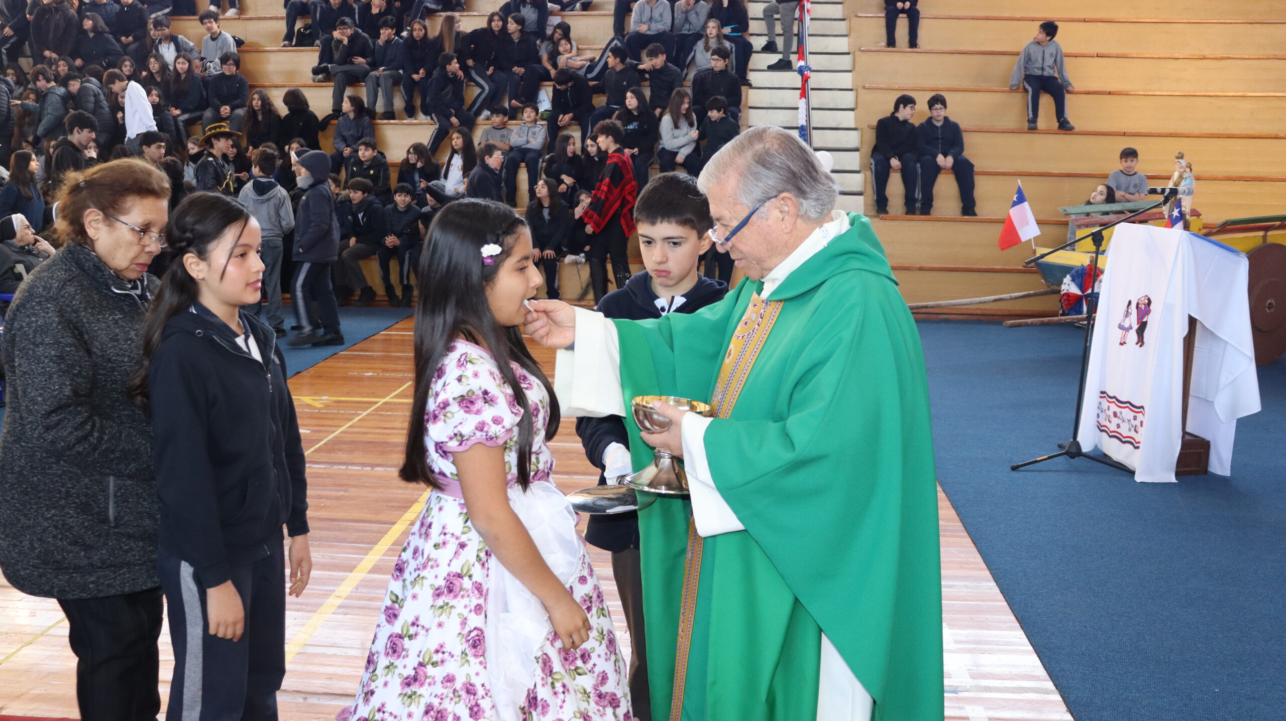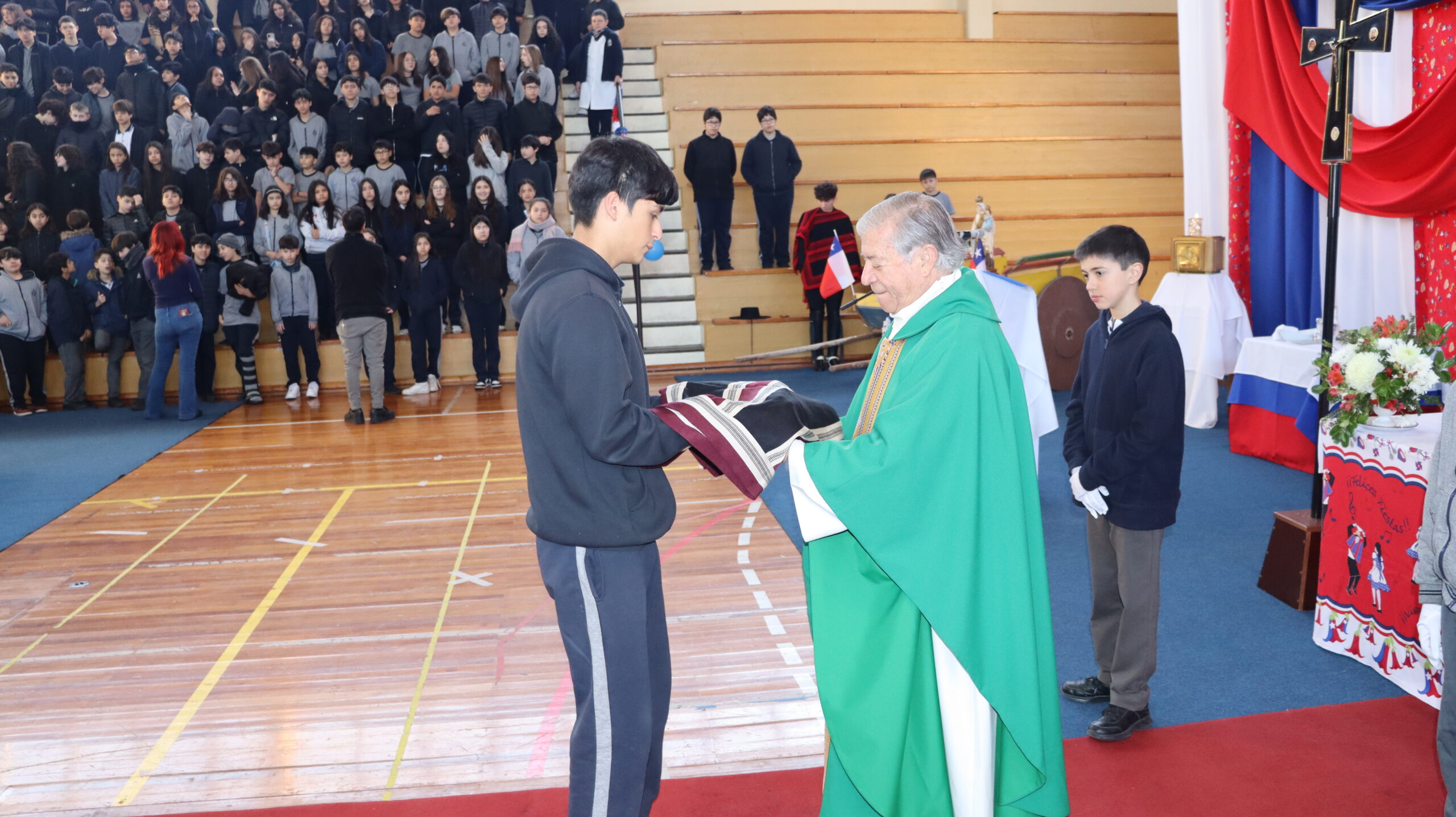 Toda la comunidad educativa: estudiantes, docentes, directivos, comunidad religiosa, padres, apoderados y personal del colegio, nos reunimos para dar gracias a Dios por nuestra patria. La participación de todos, con sus trajes típicos, sus pañuelos al viento y sus voces entonando cantos a la chilena, hizo de esta celebración un verdadero testimonio de fe y de amor por nuestras raíces.