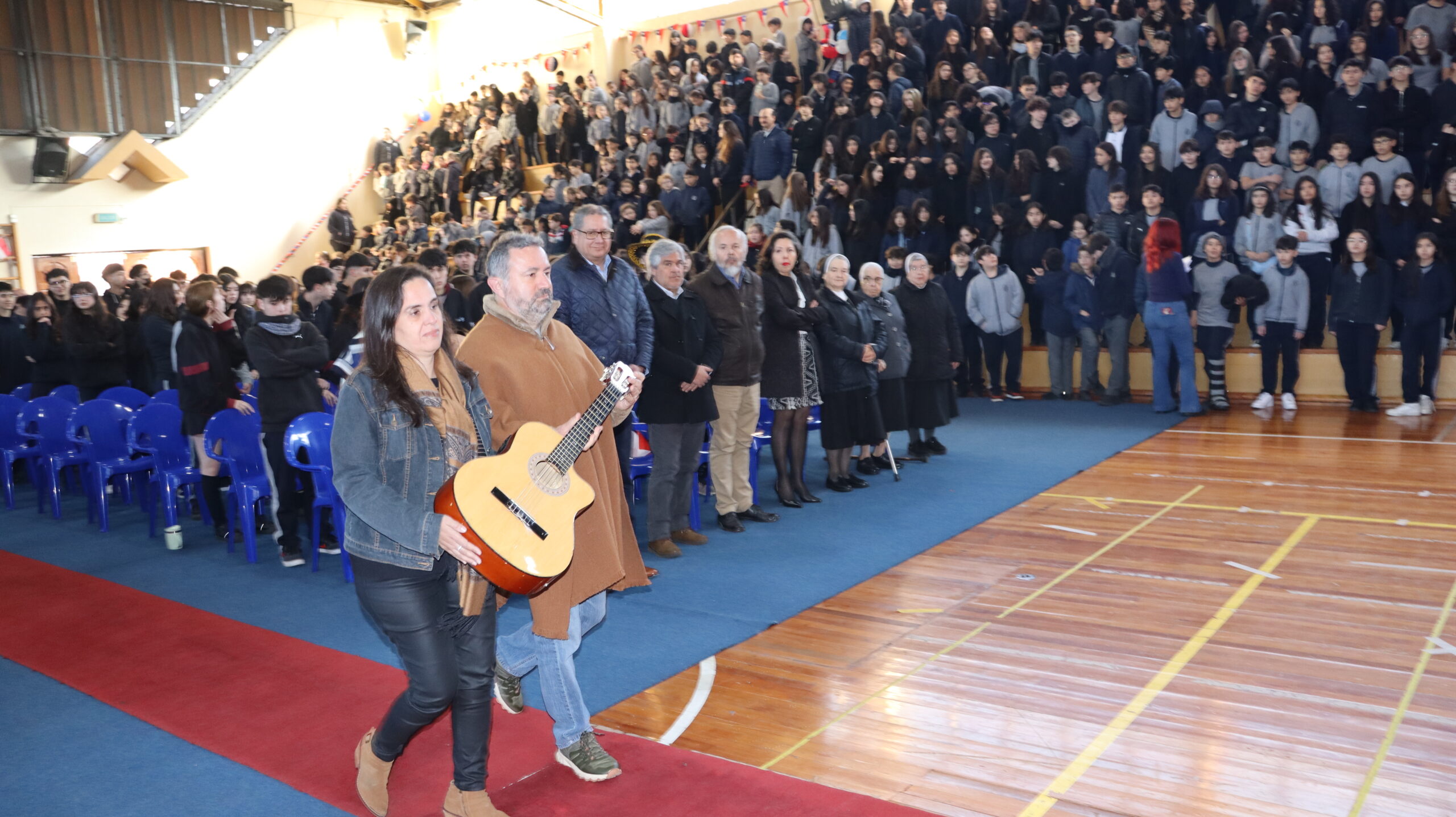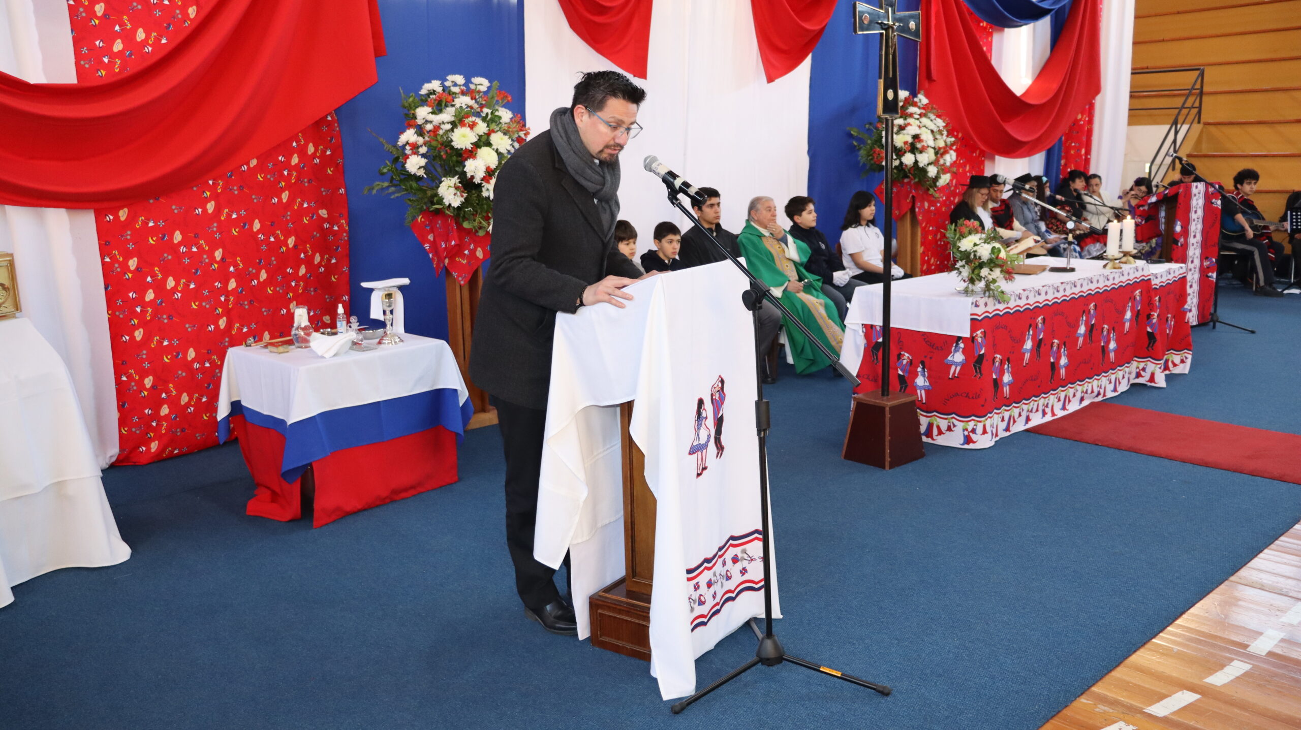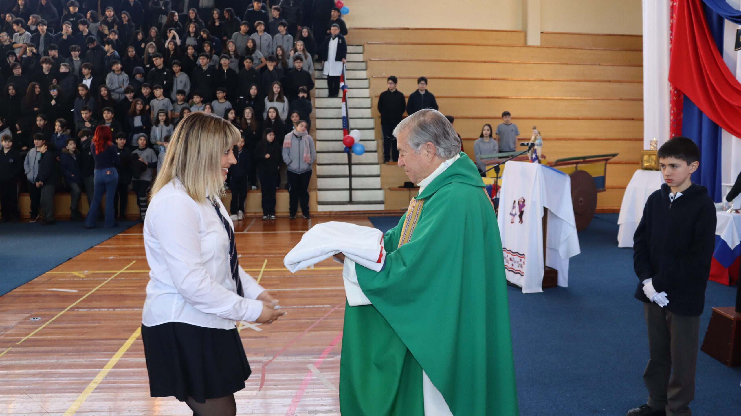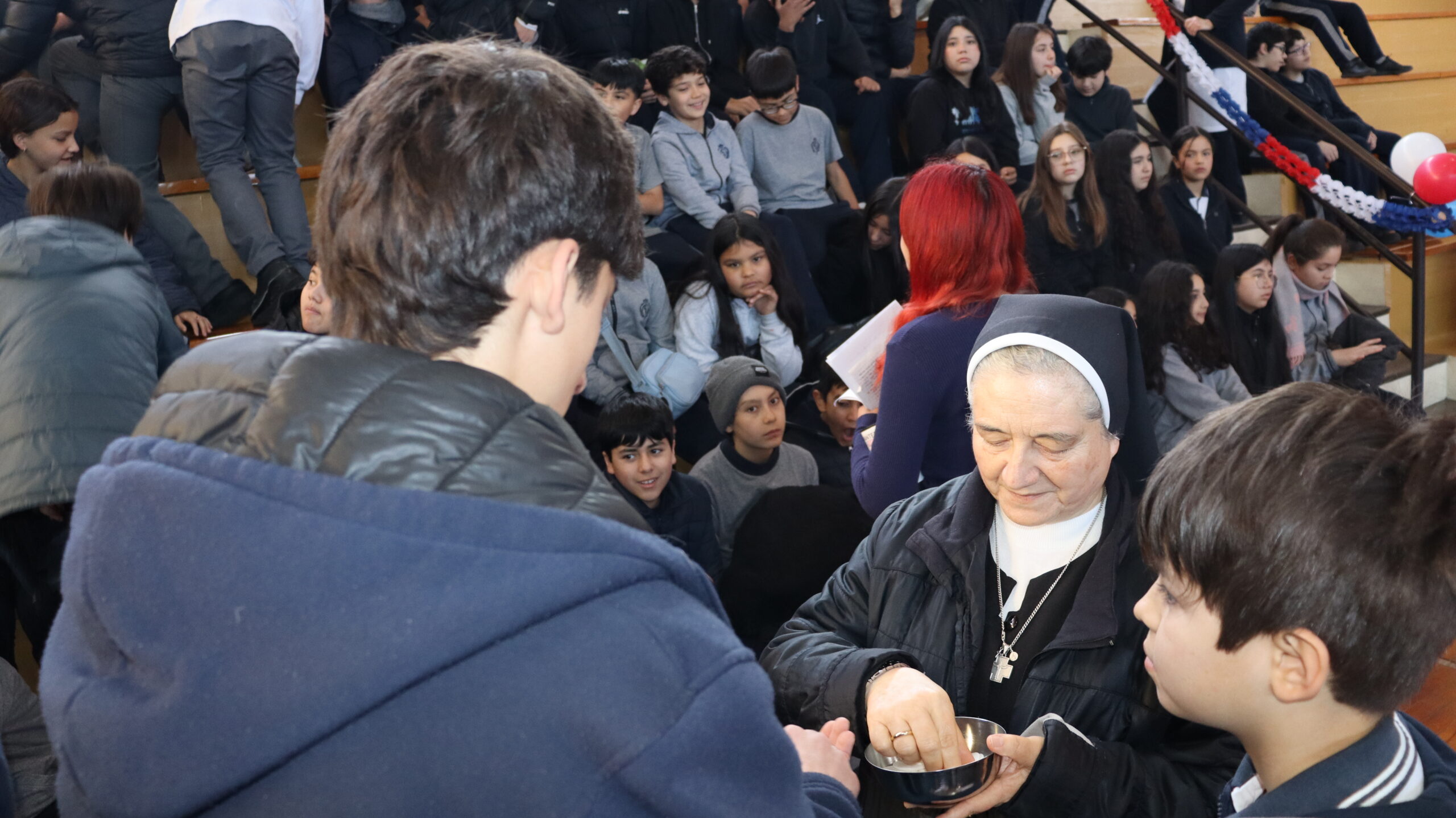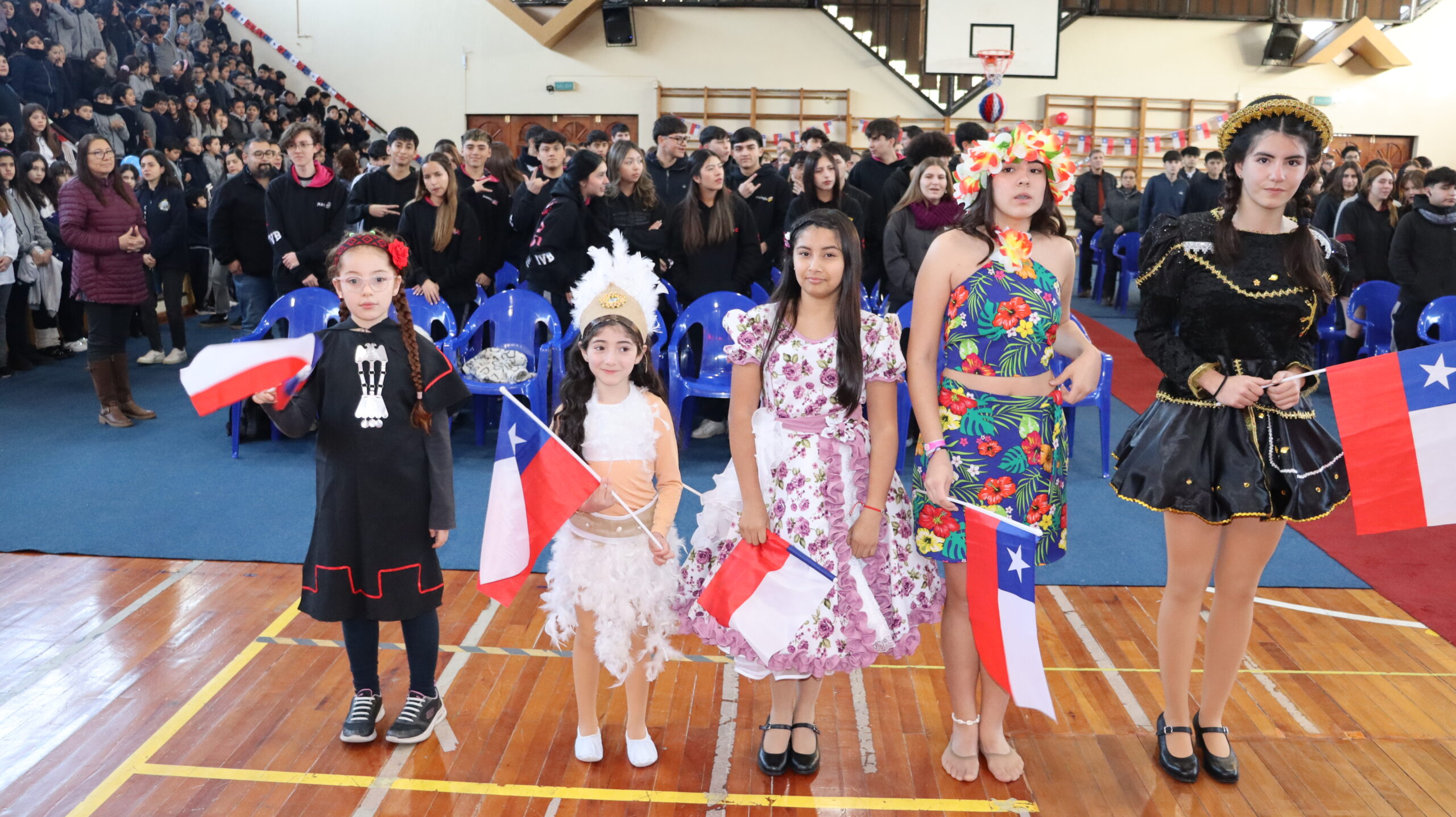 Toda la comunidad educativa: estudiantes, docentes, directivos, comunidad religiosa, padres, apoderados y personal del colegio, nos reunimos para dar gracias a Dios por nuestra patria. La participación de todos, con sus trajes típicos, sus pañuelos al viento y sus voces entonando cantos a la chilena, hizo de esta celebración un verdadero testimonio de fe y de amor por nuestras raíces.