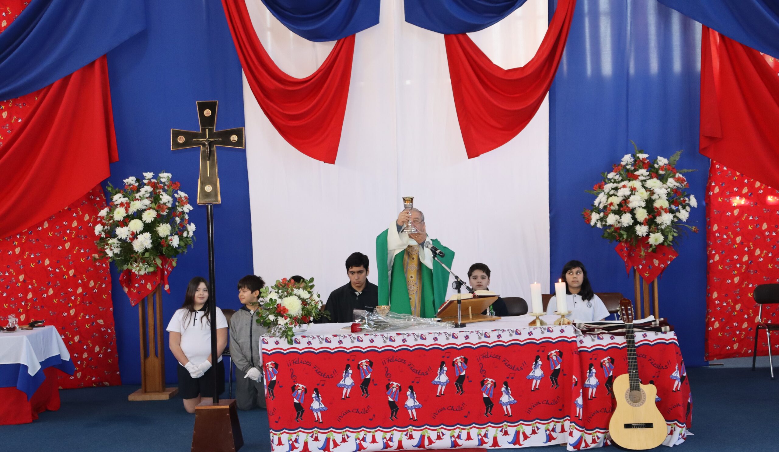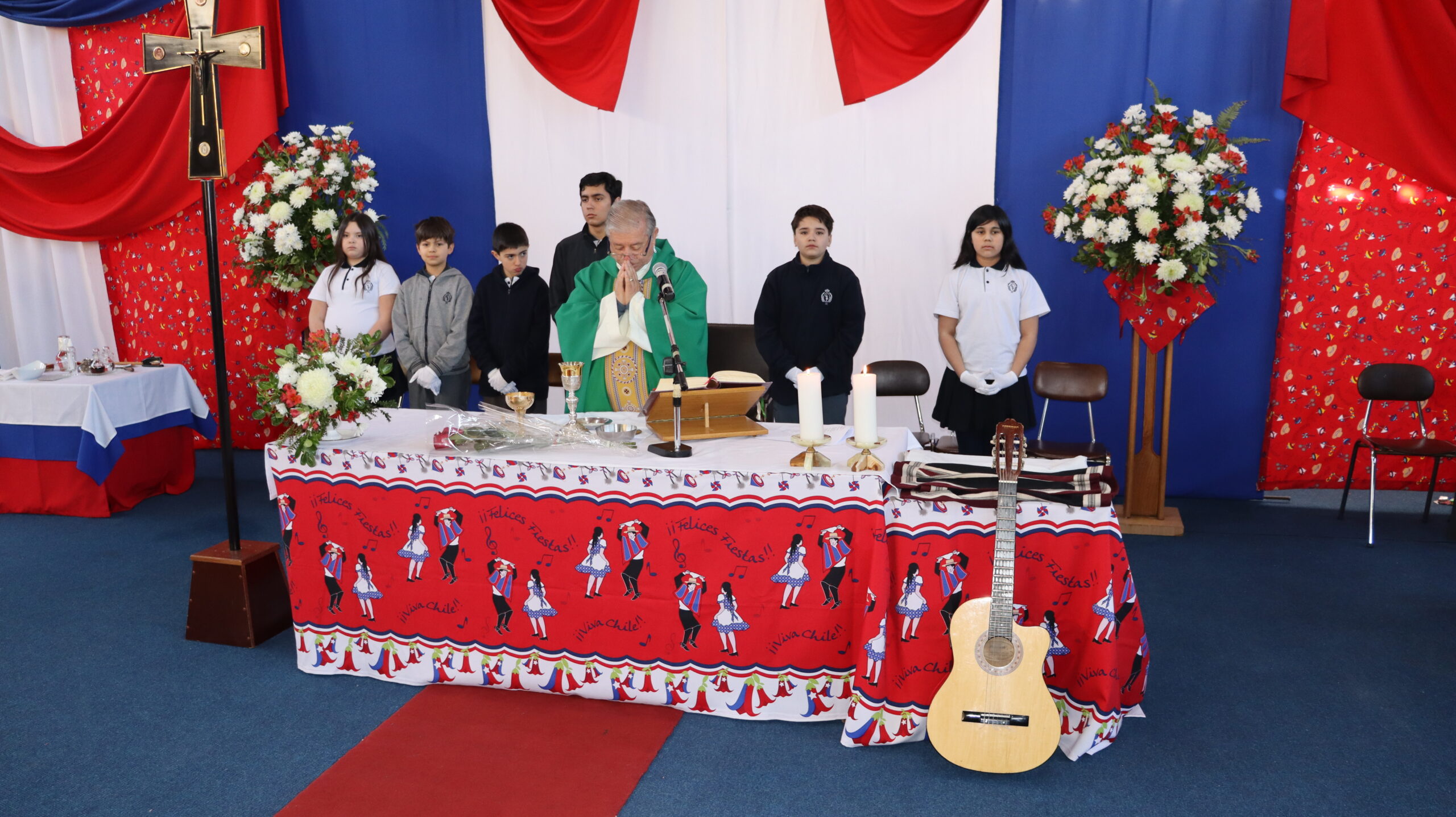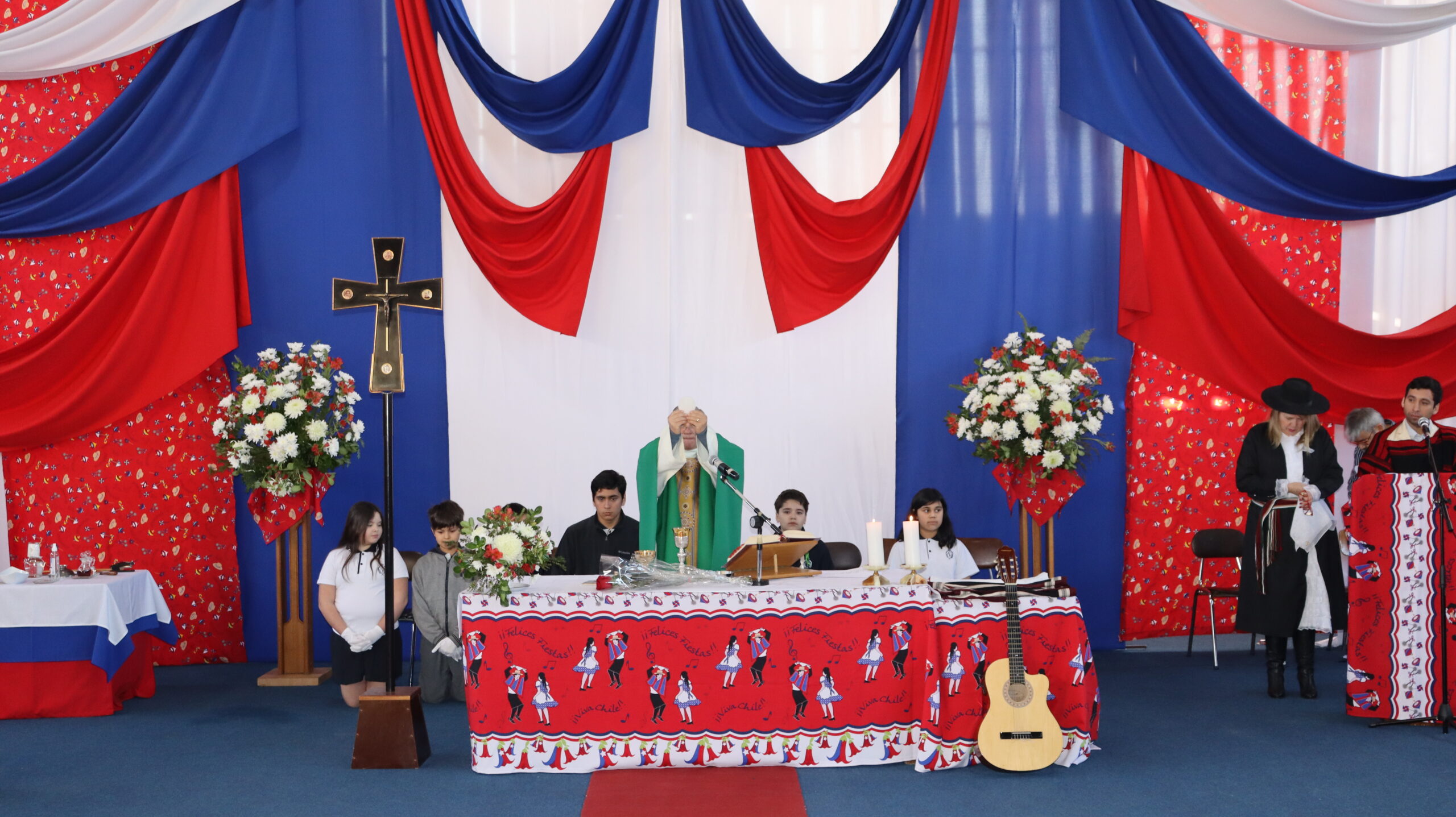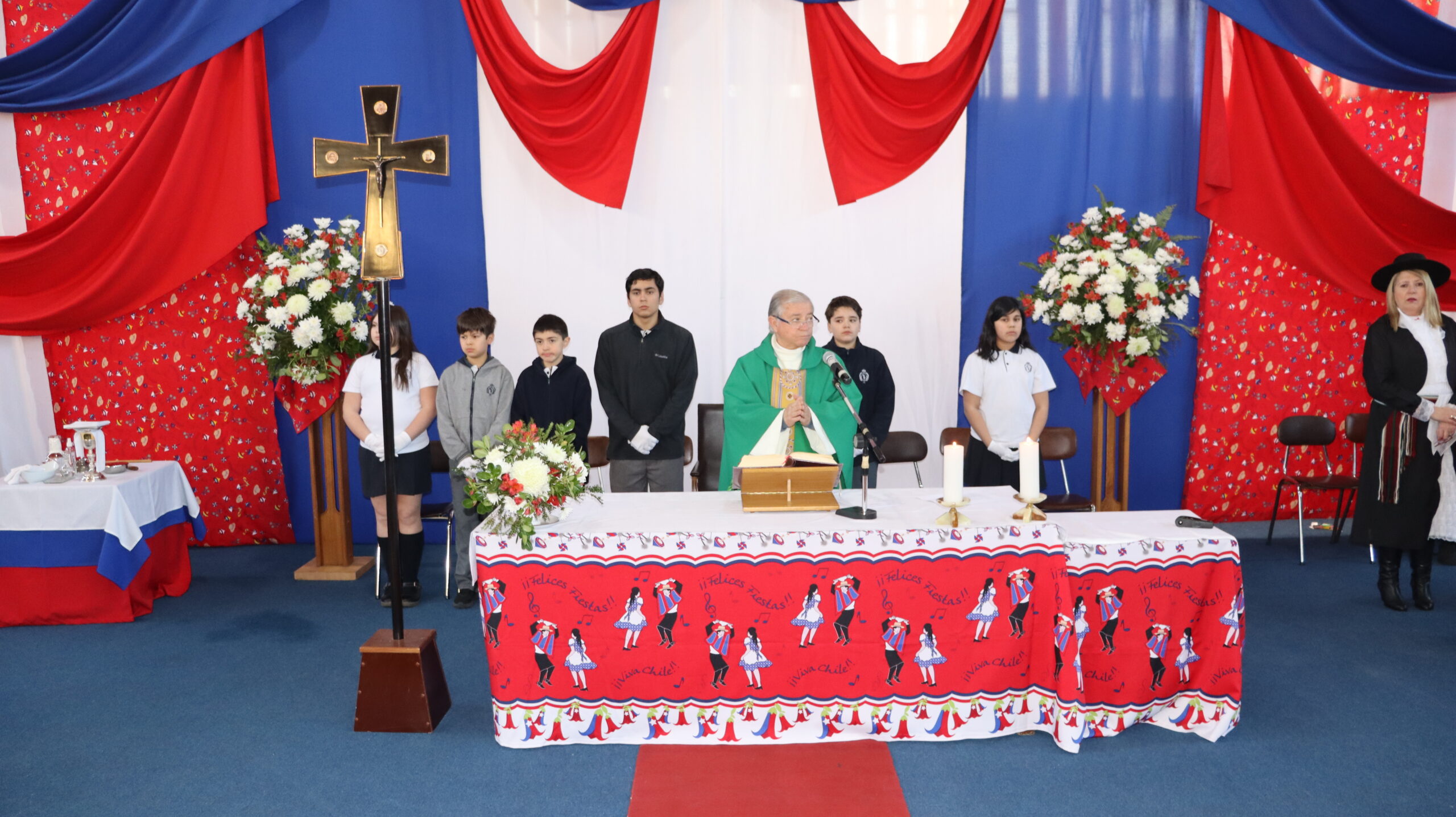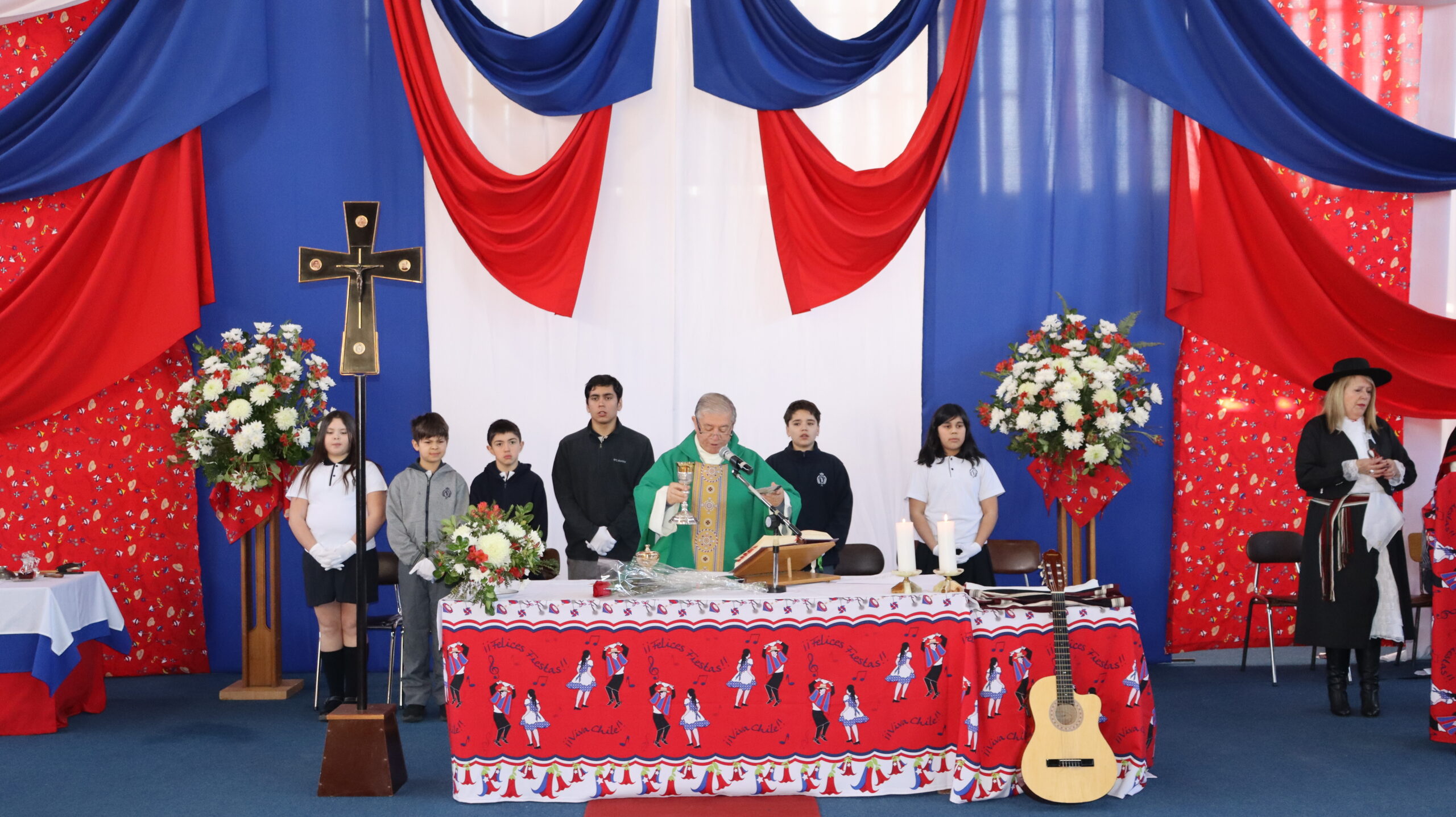 Agradecemos de corazón a cada persona que con su entusiasmo y dedicación hicieron posible esta celebración litúrgica. A los músicos, a las parejas de huasos, al coro folclórico preparado para la ocasión, a los niños y niñas que acompañaron con los trajes típicos de nuestro país, a todos los que de una u otra forma contribuyeron a que esta misa fuera una experiencia inolvidable.