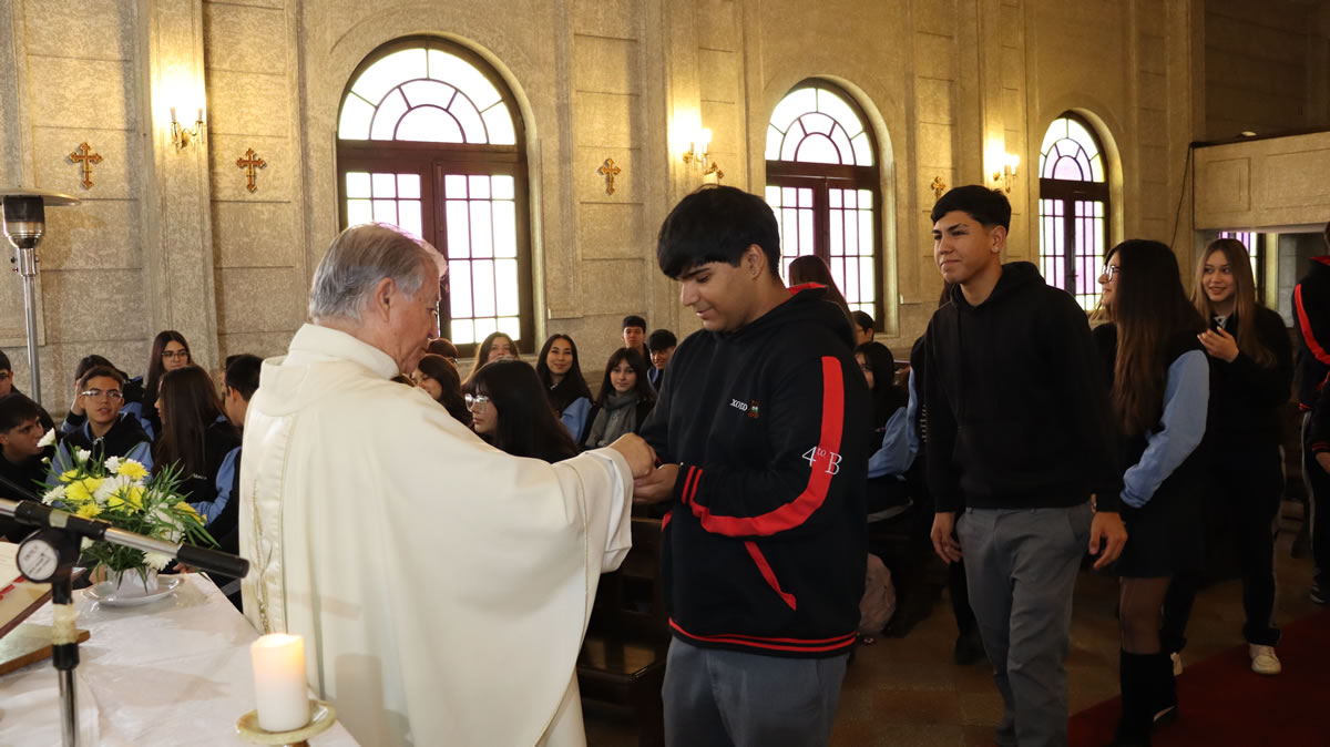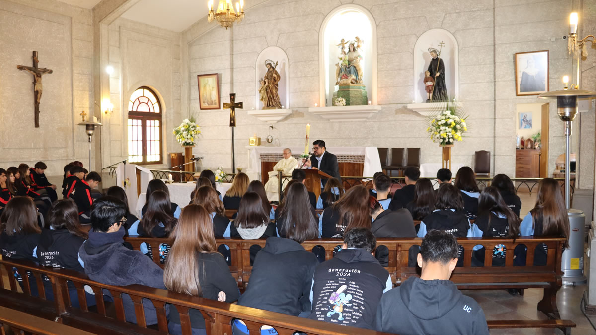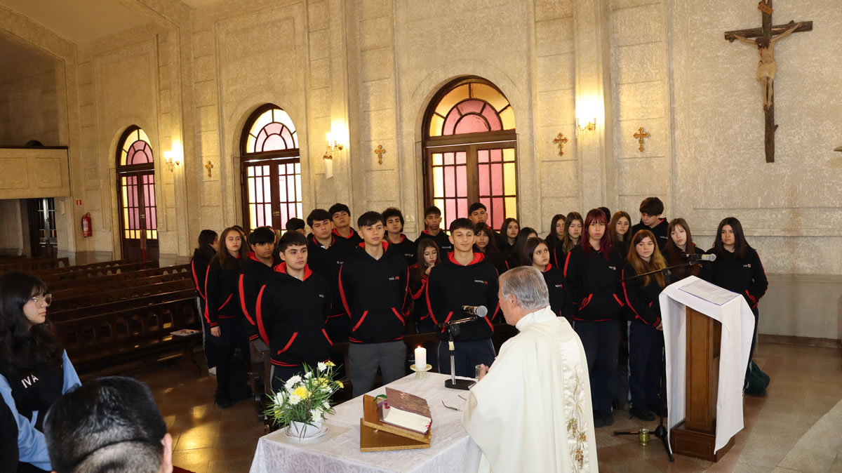 El pasado martes 21 de abril se celebró la Misa de Nivel de Cuartos Medios, instancia de oración permitió a los estudiantes encontrarse con el Señor en medio de su vida cotidiana.